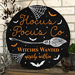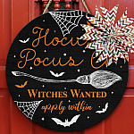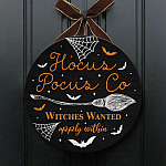 Let’s Shop Hocus Pocus Co Witches Wanted Apply Within Circle Wooden Door Sign – Hocus Pocus Front Porch Sign!