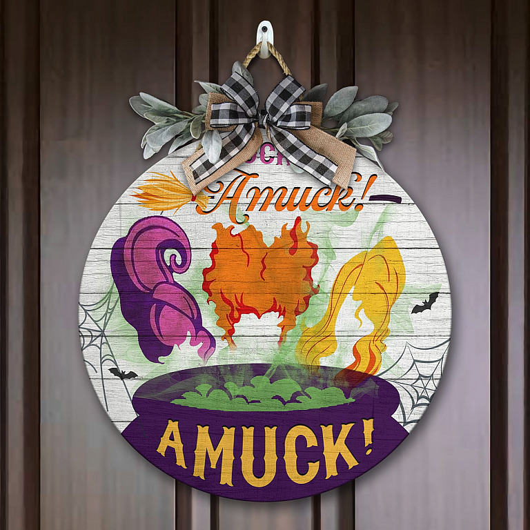 Let’s Shop Hocus Amuck Amuck Amuck Decorative Circle Wooden Door Sign – Front Porch Sign Indoor Outdoor Decor!