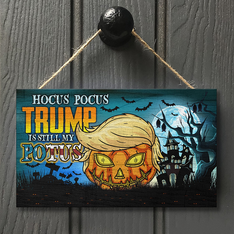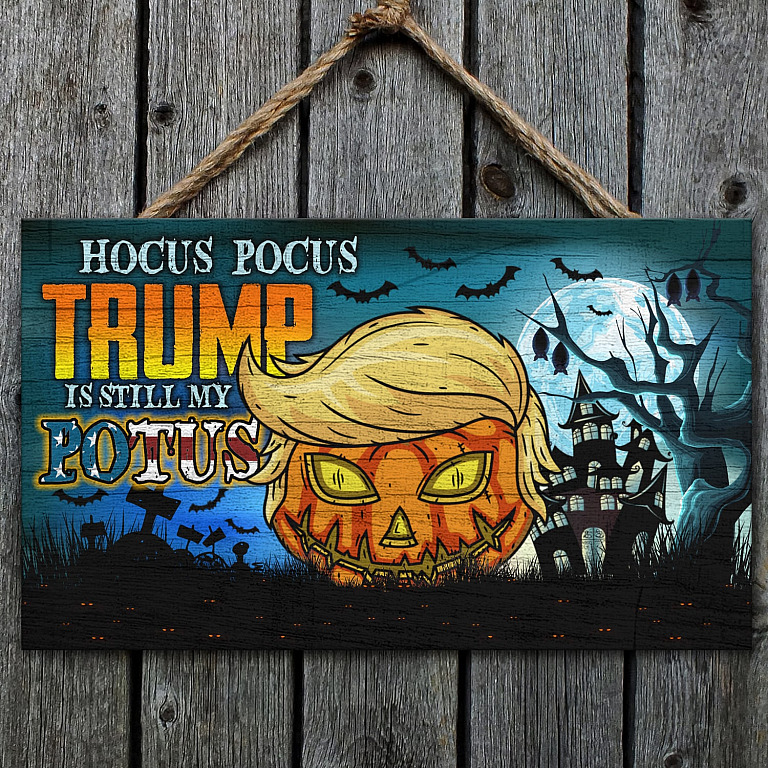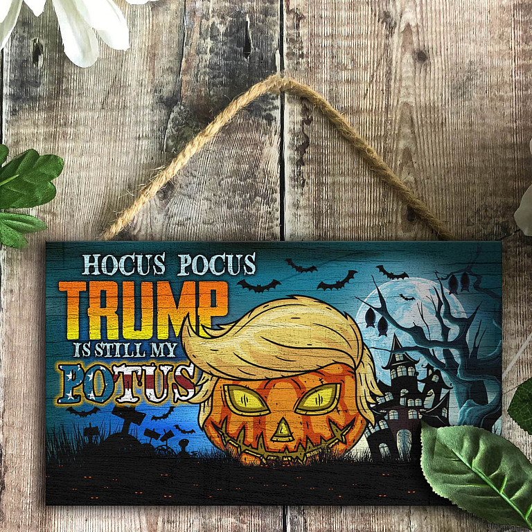 Let’s Shop Hocus-Pocus Trump Is Still My POTUS Decorative Rectangle Wooden Door Sign – Front Porch Sign Indoor Outdoor Decor!