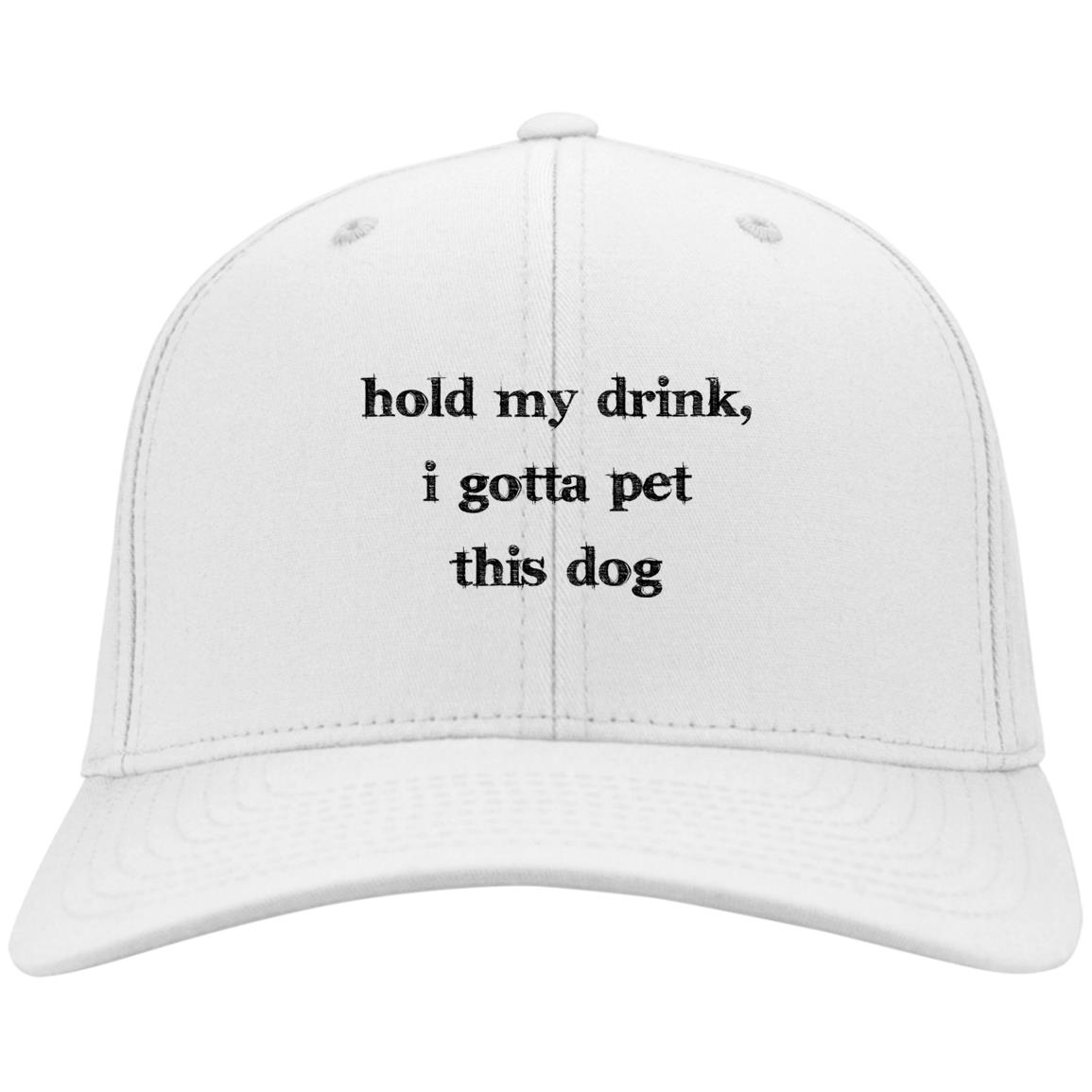 Hold My Drink I Gotta Pet This Dog White Twill Cap – Trucker Hat