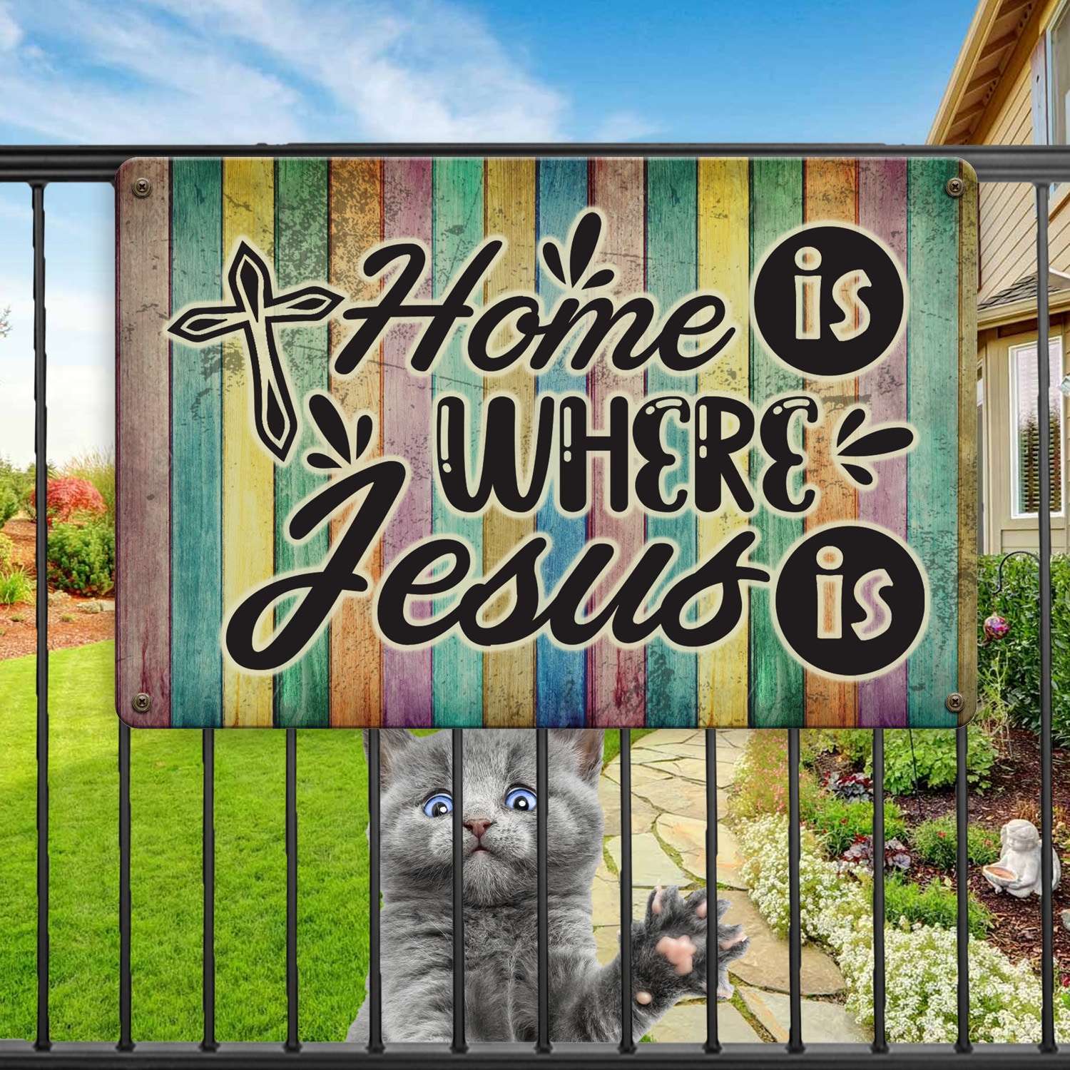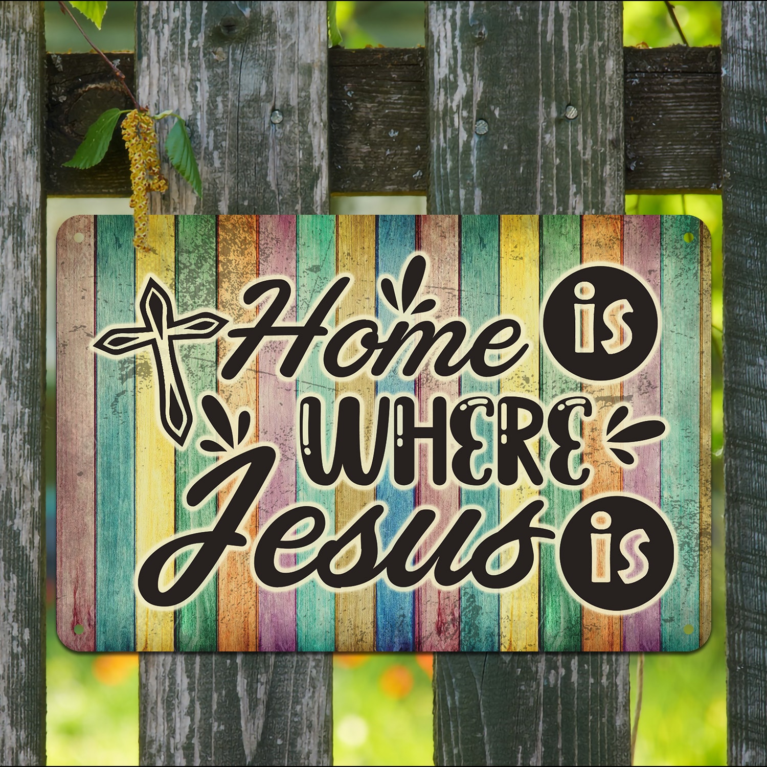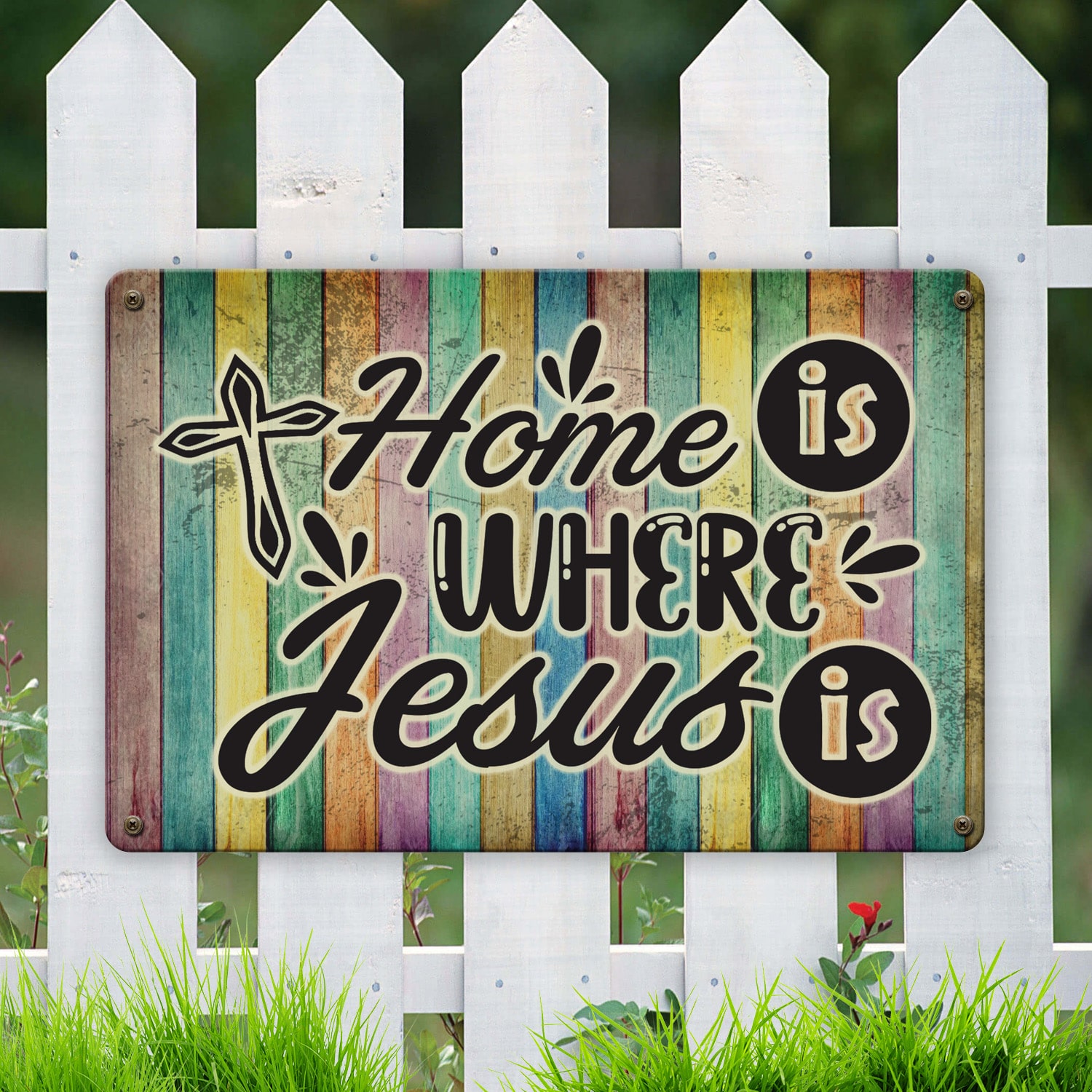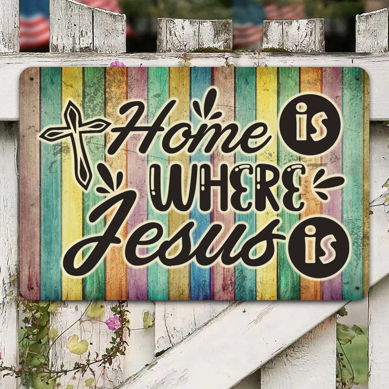 Let’s Shop Home Is Where Jesus Is Christian Faith Metal Sign – Religious Wall Decor Sign Garden Sign!