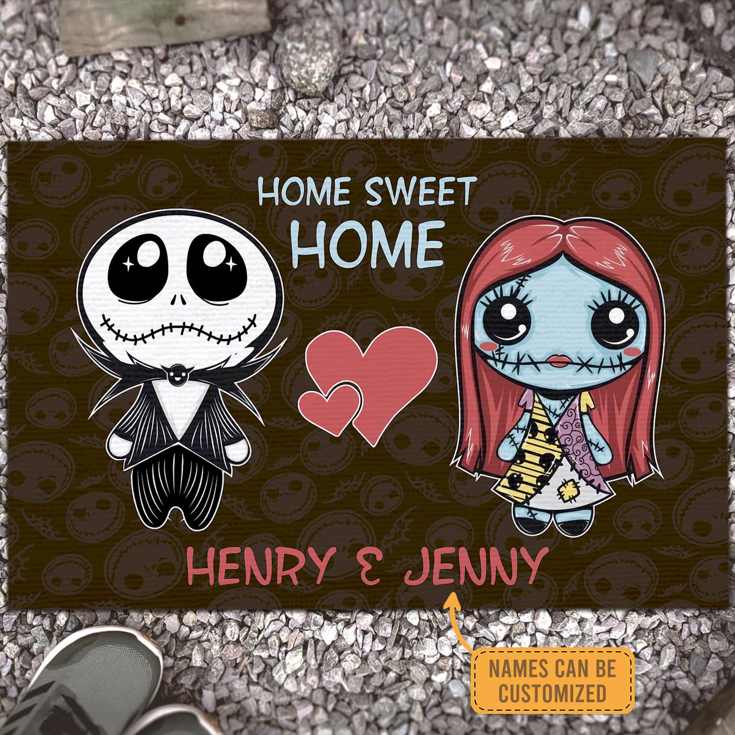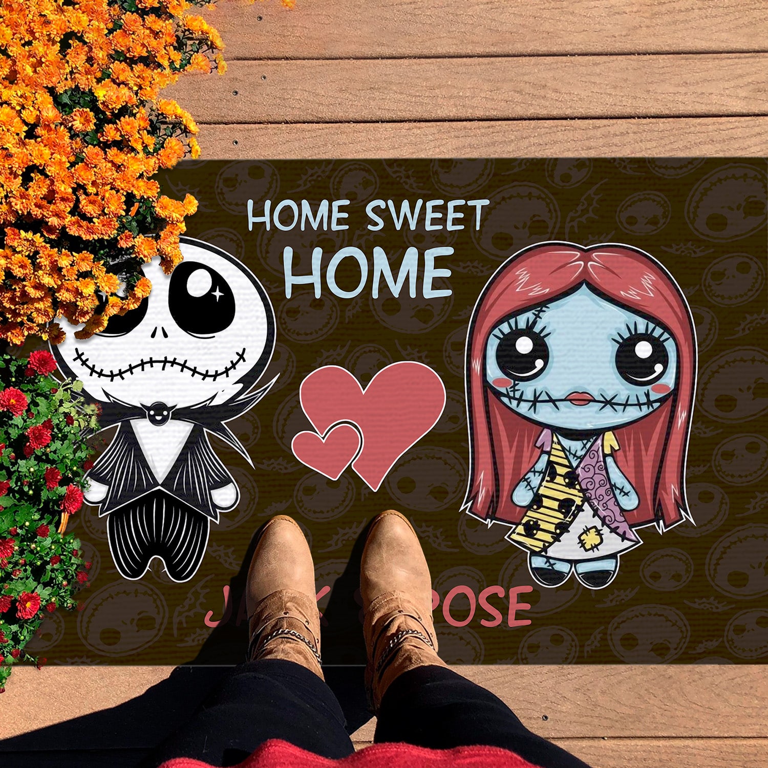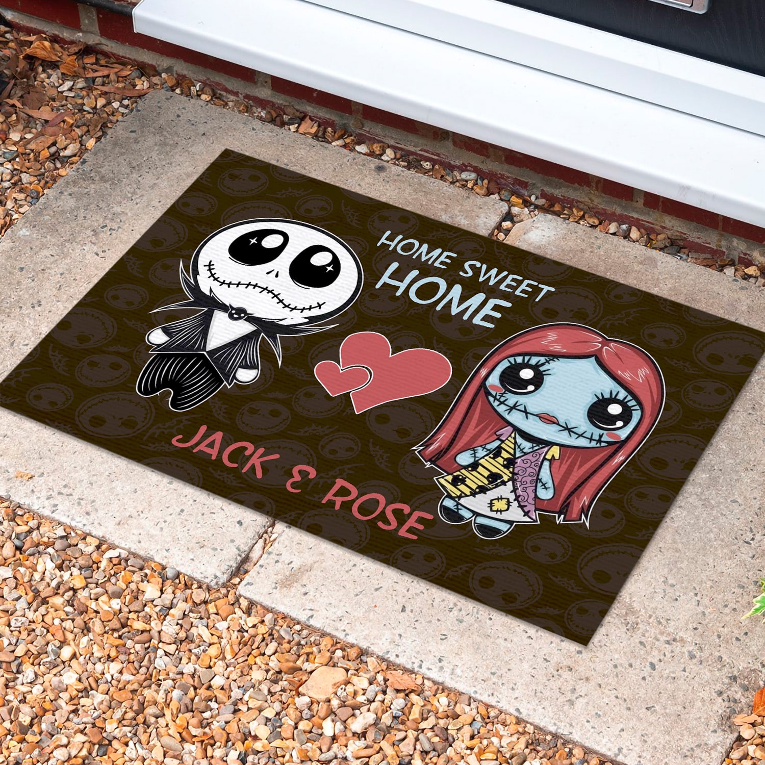 Let’s Shop Personalized Jack Skellington Couple Home Sweet Home Doormat – Funny Halloween Character Doormat!