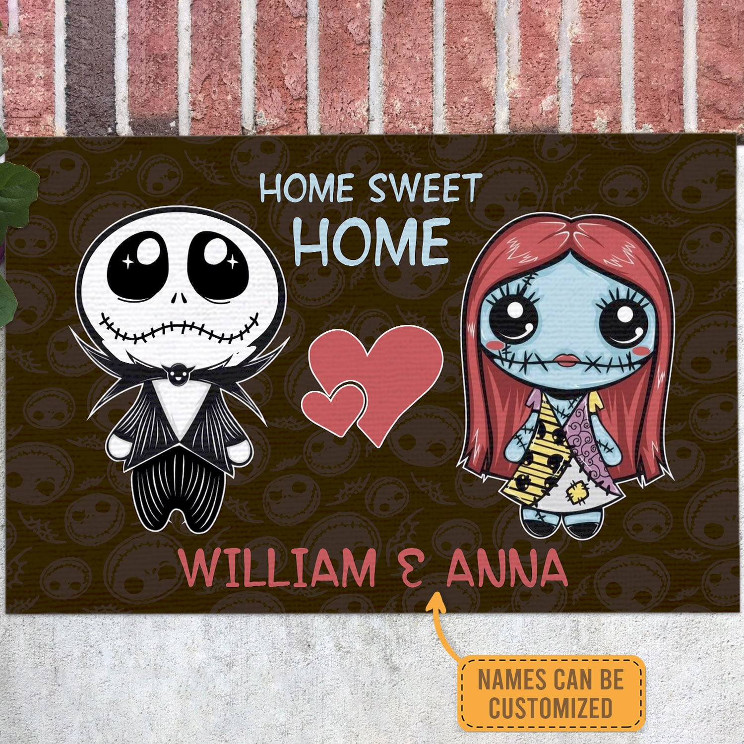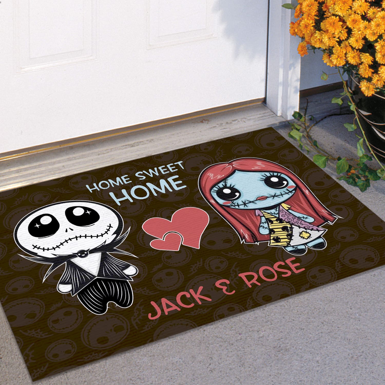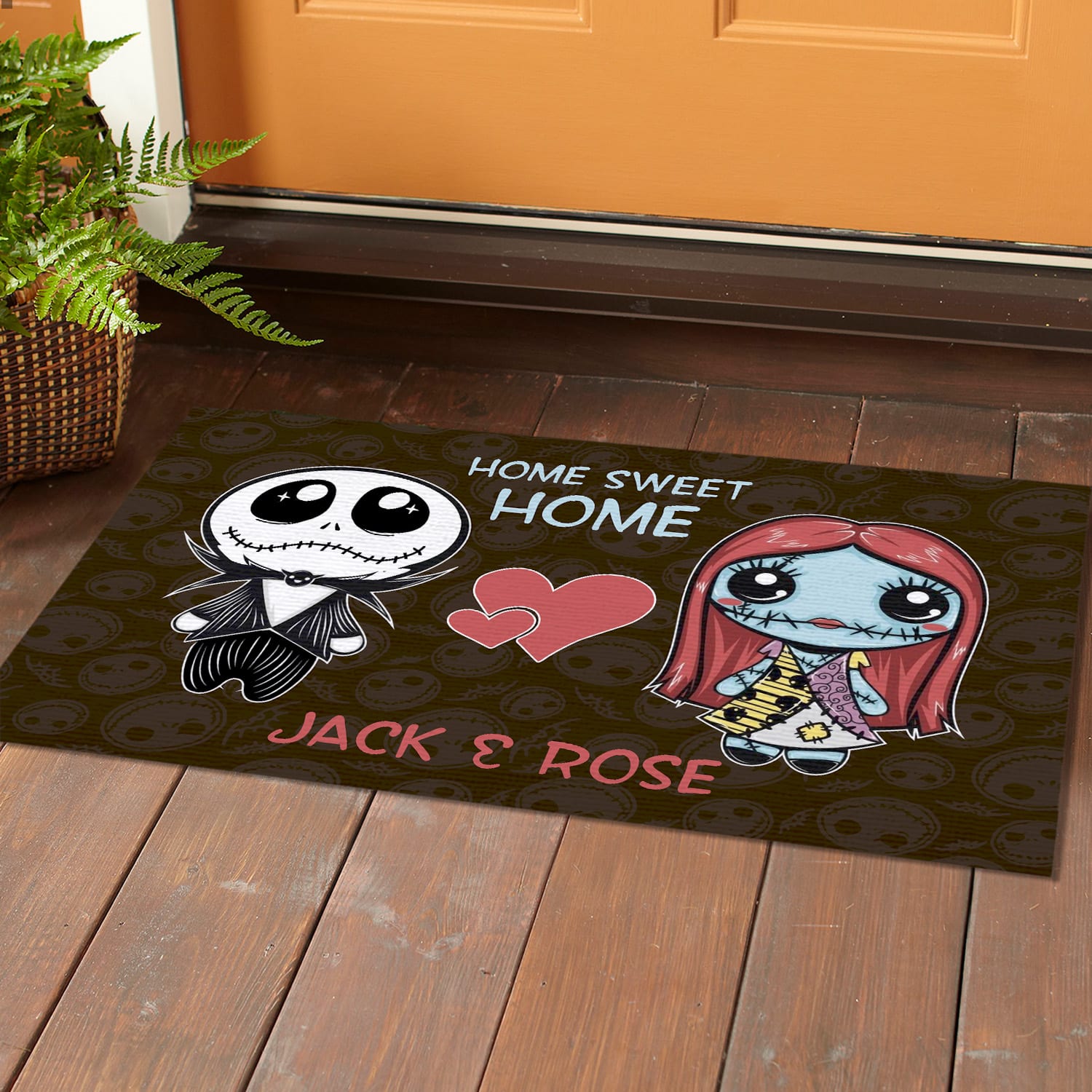 Let’s Shop Personalized Jack Skellington Couple Home Sweet Home Doormat – Funny Halloween Character Doormat!