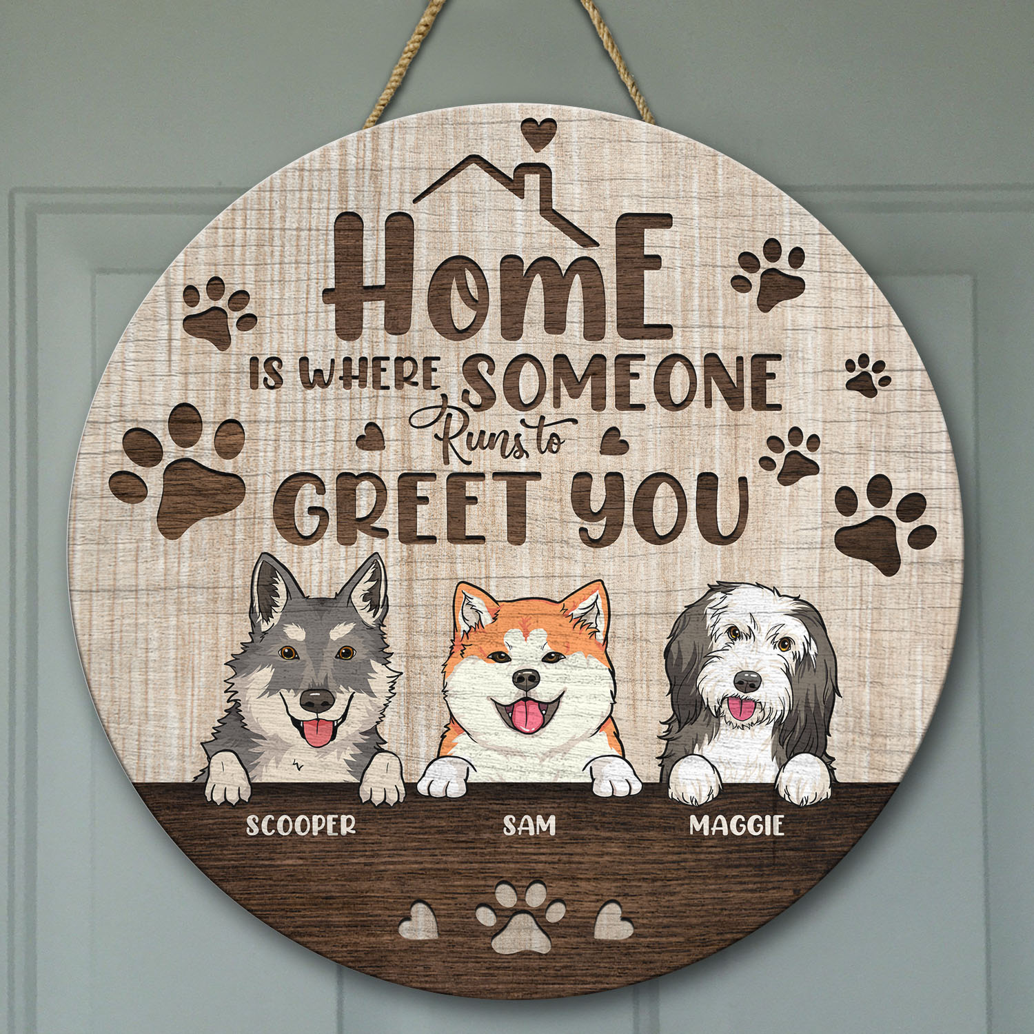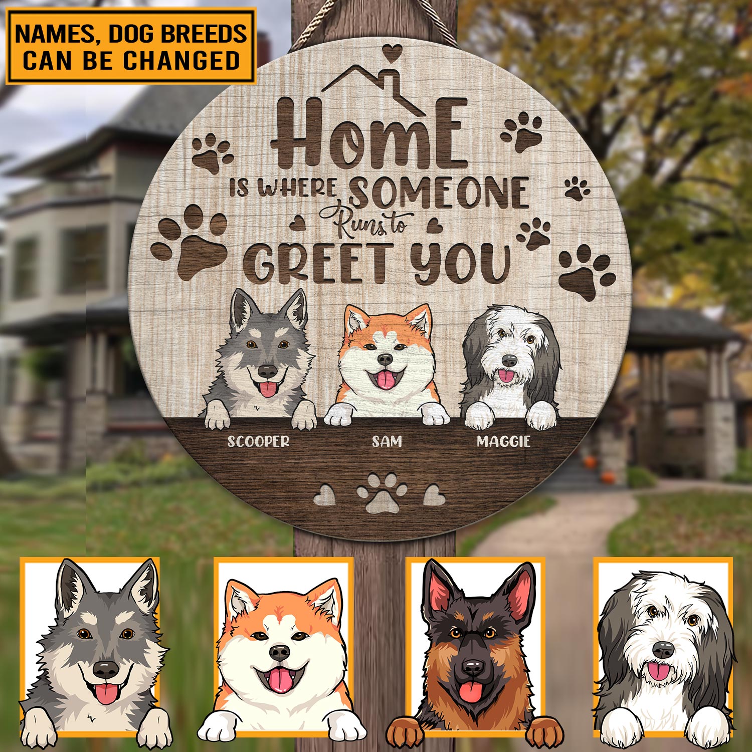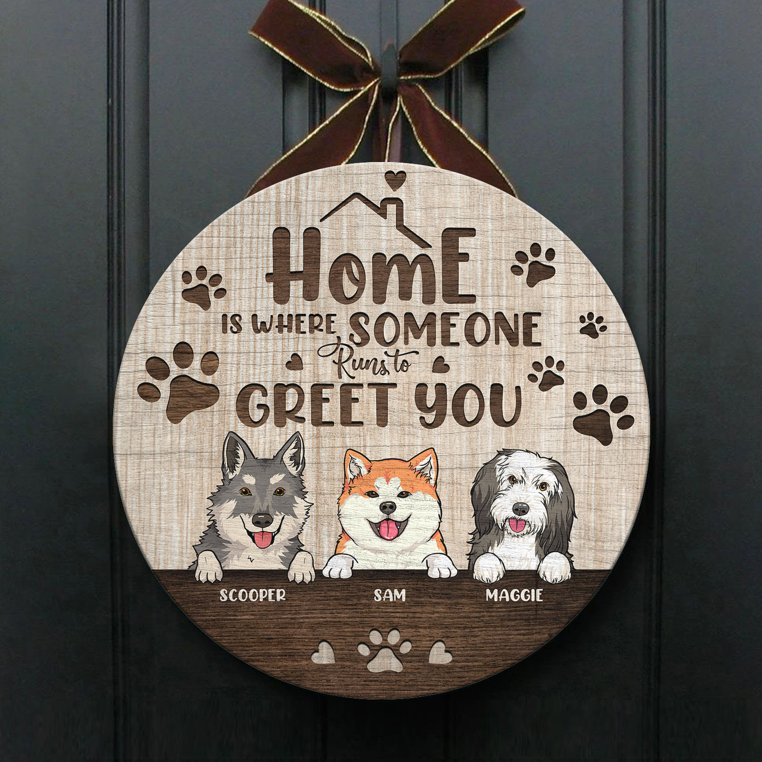 Are you spending too much time to find creative merchandise for you or suitable & special gifts for your mommy, your daddy, your son, your daughter, your children, your friends or someone you love? The struggle is over because we have various Home Is Where Someone Runs to Greet You Sign, Personalized Dog Sign, Dog Door Sign, Custom Dog Sign, Personalized Dog Door Sign, Custom Dog Door Sign, Custom Dog Breed and Name Door Sign which will make perfect presents for your beloveds. In order to make your present stand out, we have created lots of unique and awesome customized photo gifts & personalized designs.