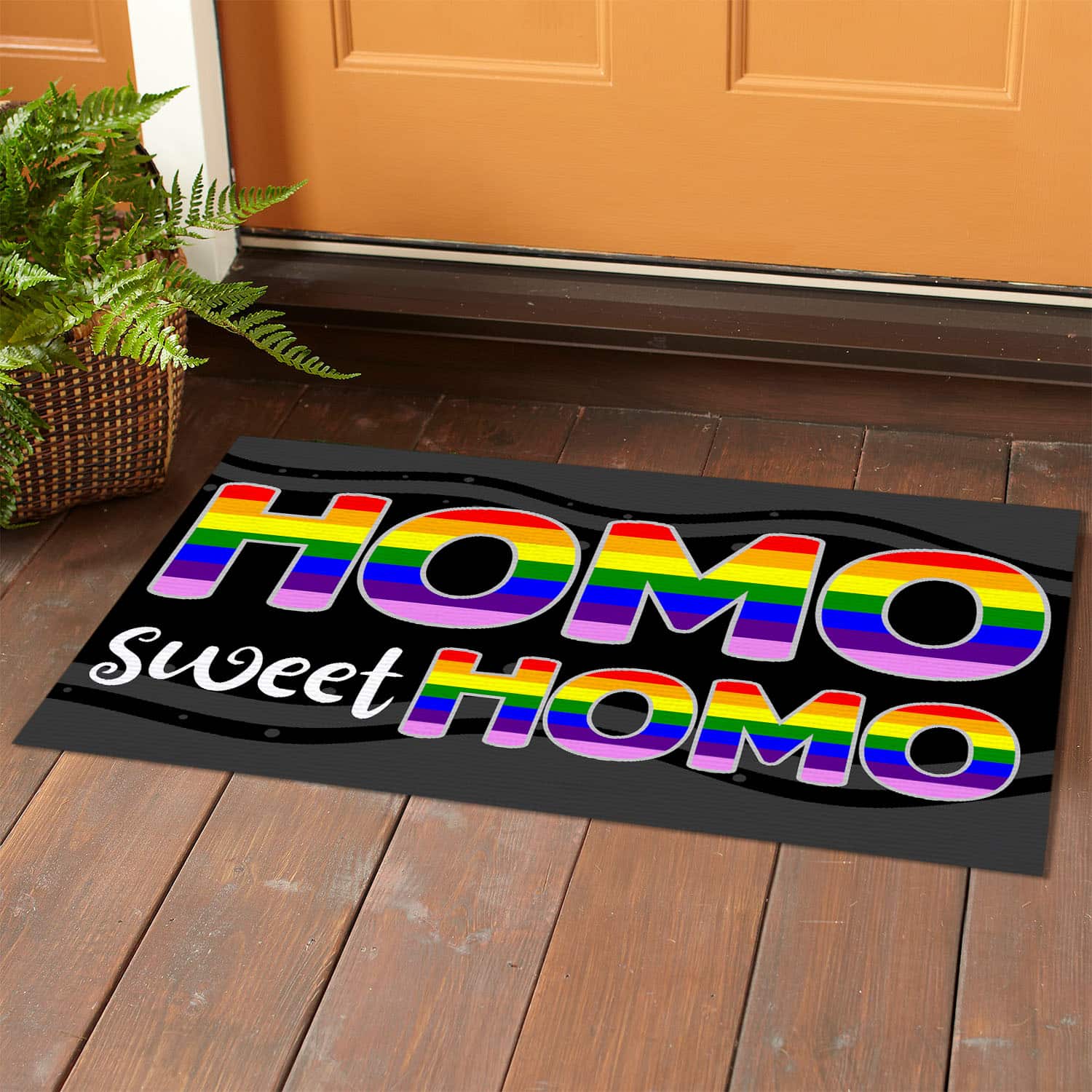Let’s Shop LGBT Homo Sweet Homo Rainbow Indoor Doormat – LGBTQ Gay Pride Welcome Outdoor Door Mat!