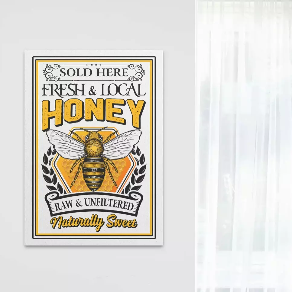 Shop Fresh and Local Honey Raw and Unfiltered Bee Lover Gallery Wrapped Framed Canvas Prints – Unframed Poster.