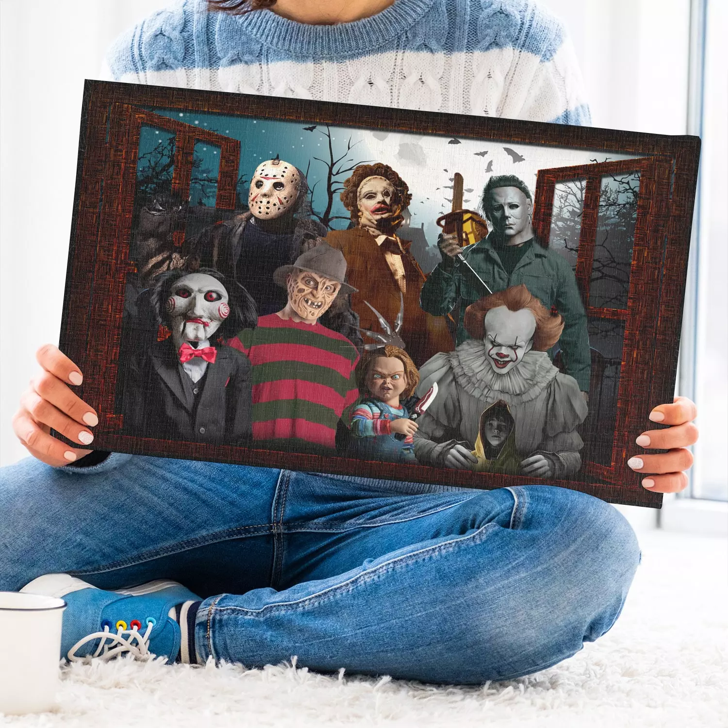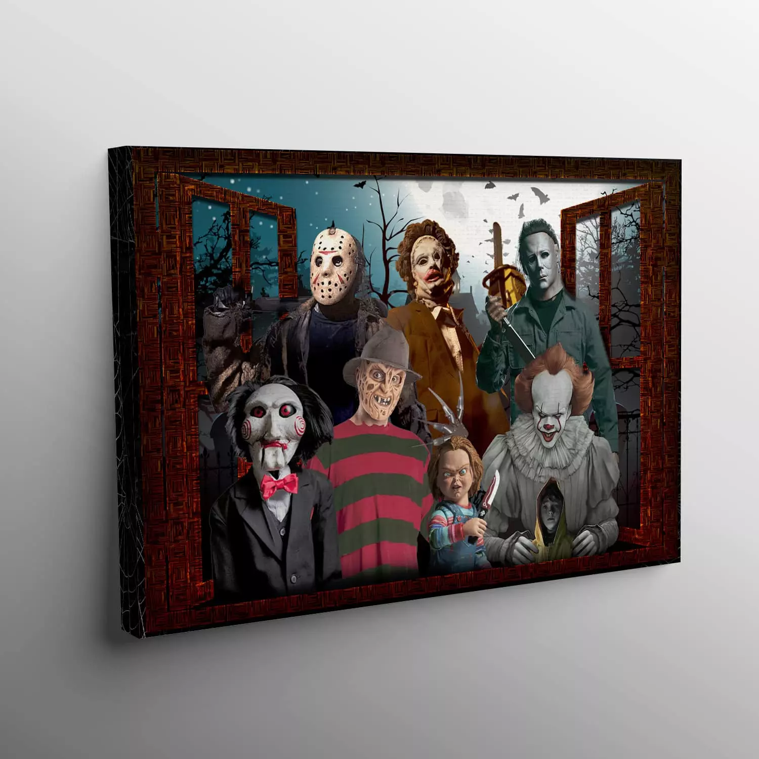 Let’s Shop Horror Character Windows Gallery Wrapped Canvas Prints – Poster – Halloween Home Decor Wall Art!
