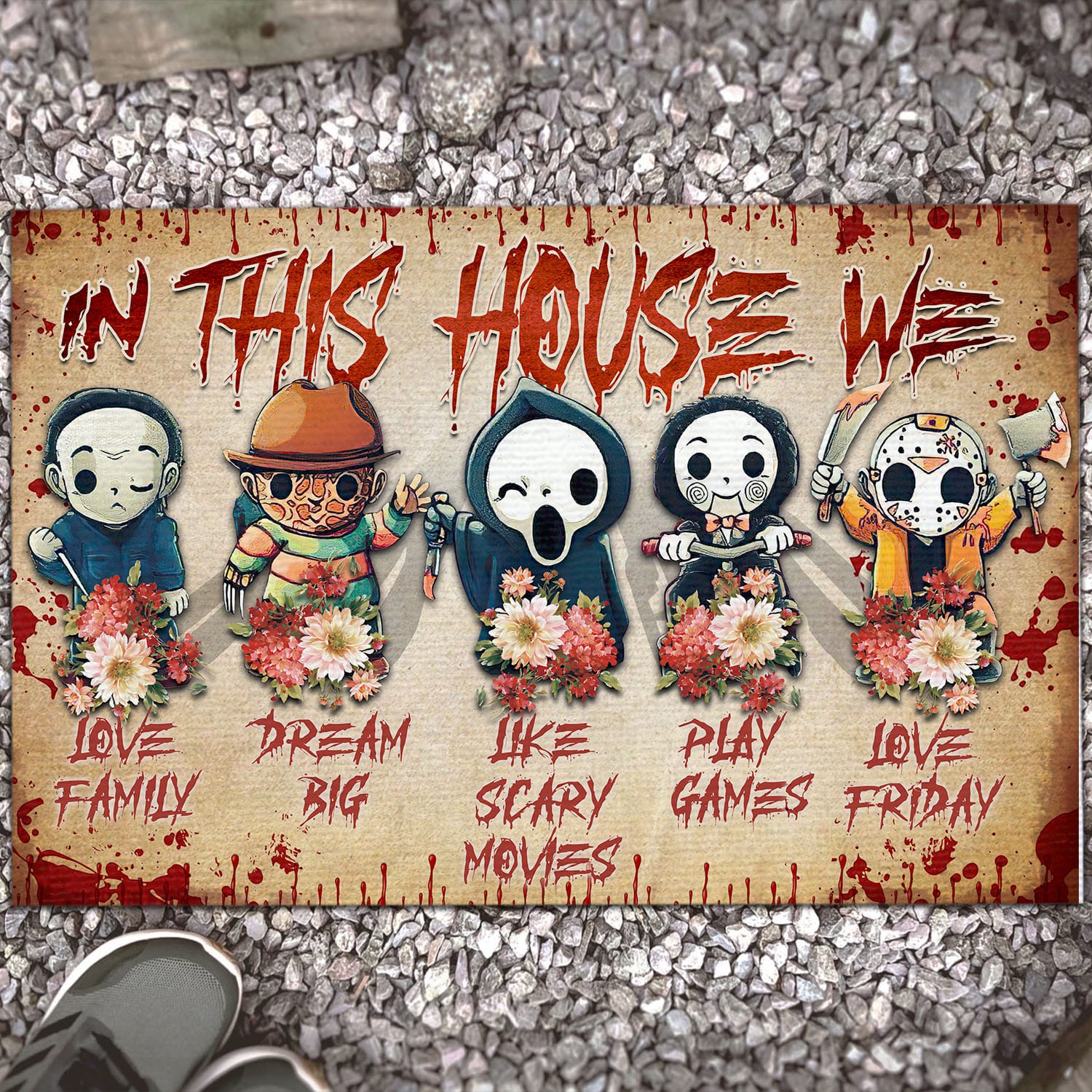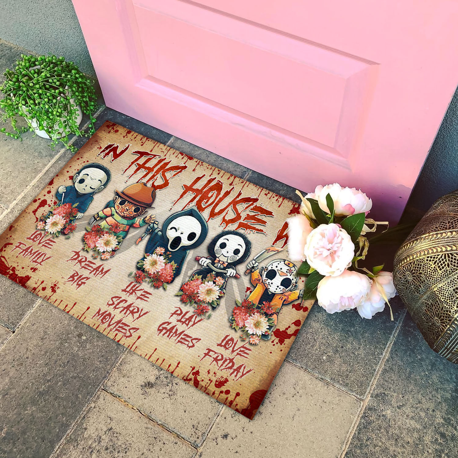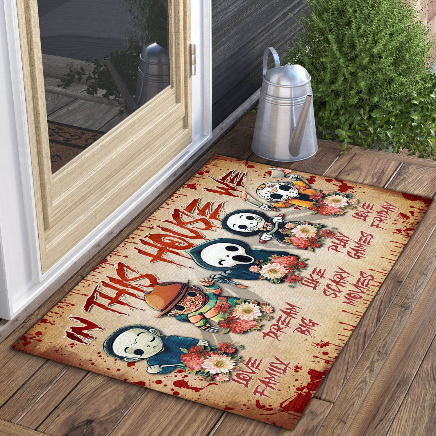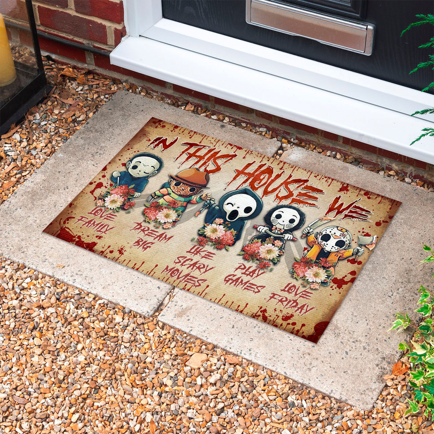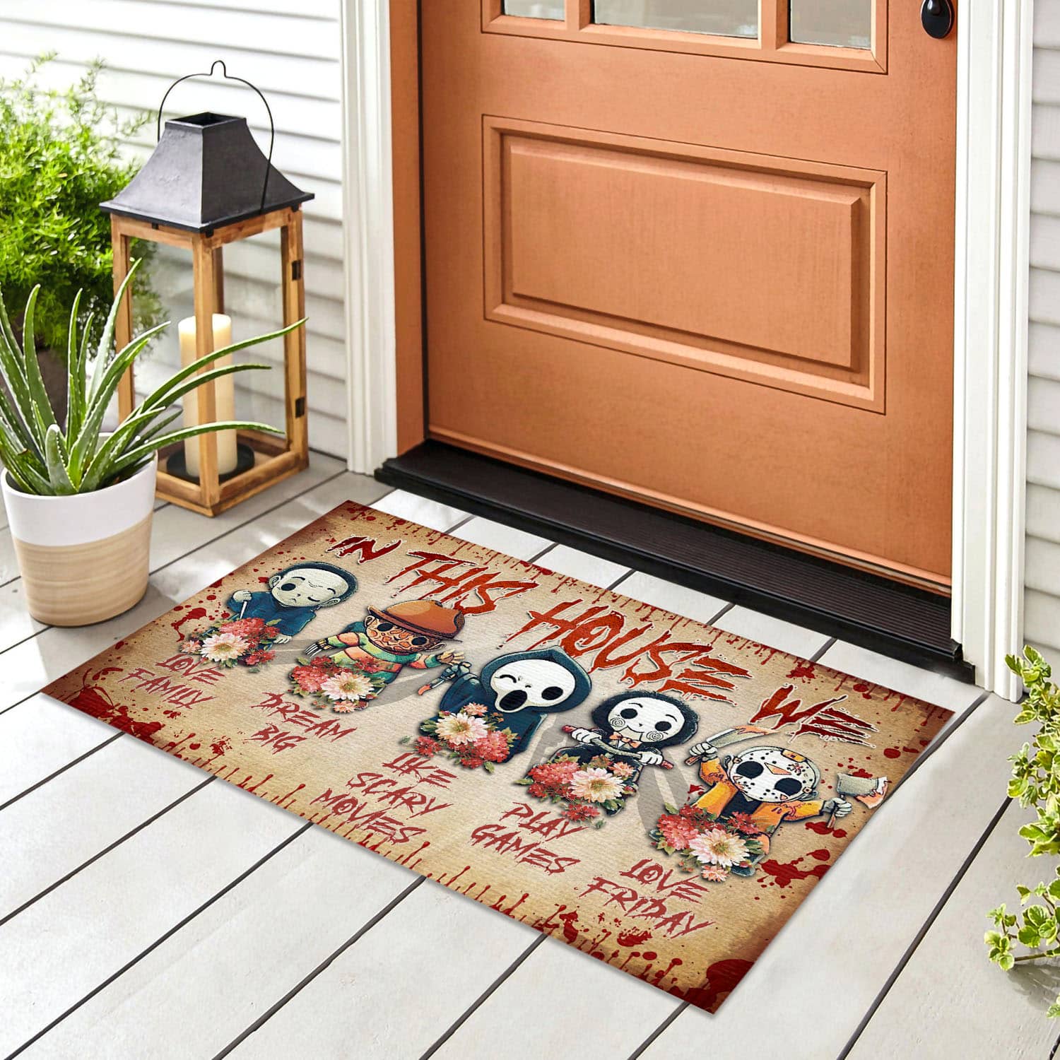 Let’s Shop In This House We Love Family Dream Big Like Scary Movies Horror Movie Characters House Doormat – Outdoor Doormat!