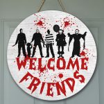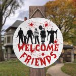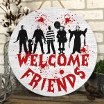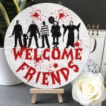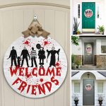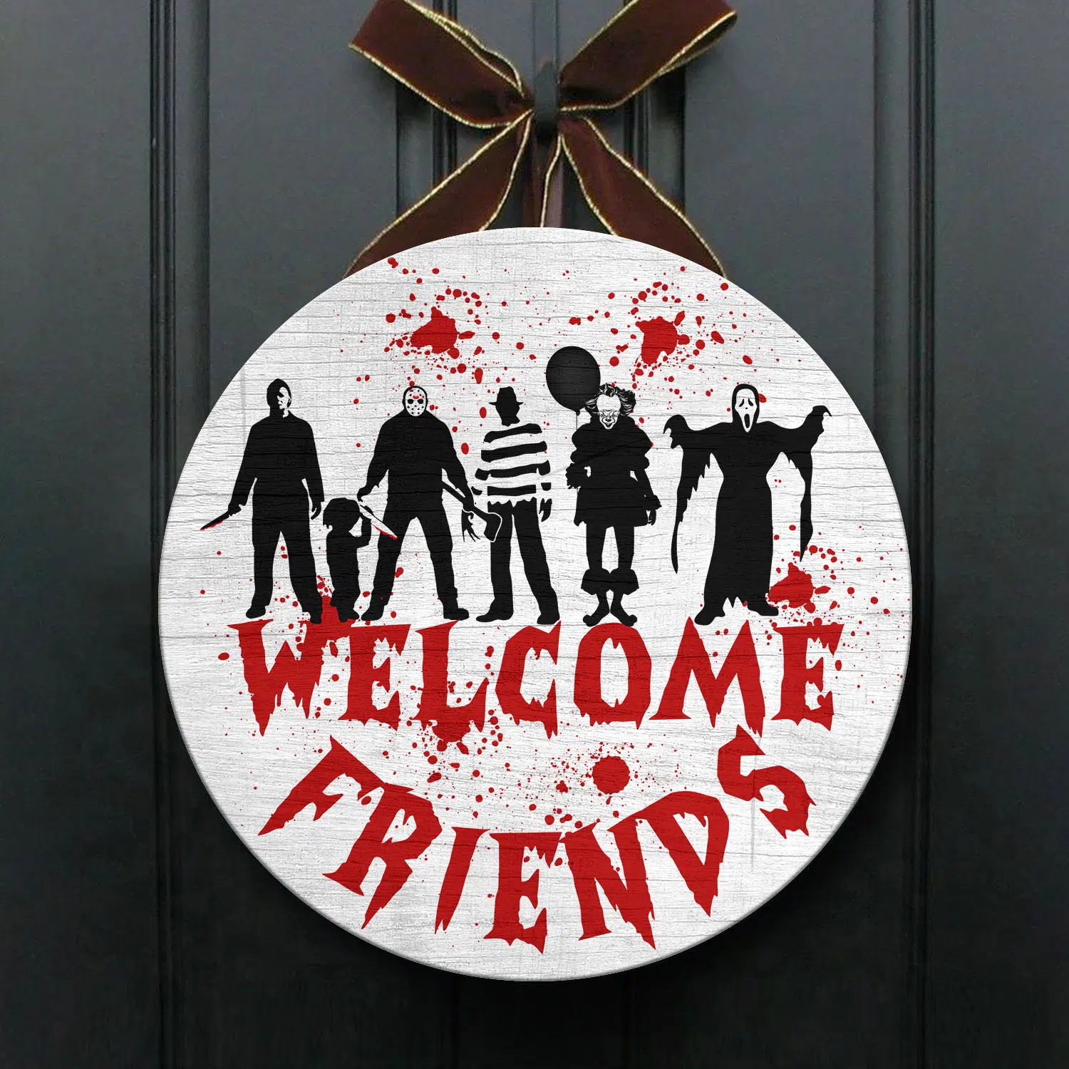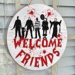 Let’s Shop Horror Friends Welcome Halloween Wooden Door Sign – Horror Movie Characters Sign Indoor Outdoor Decor!