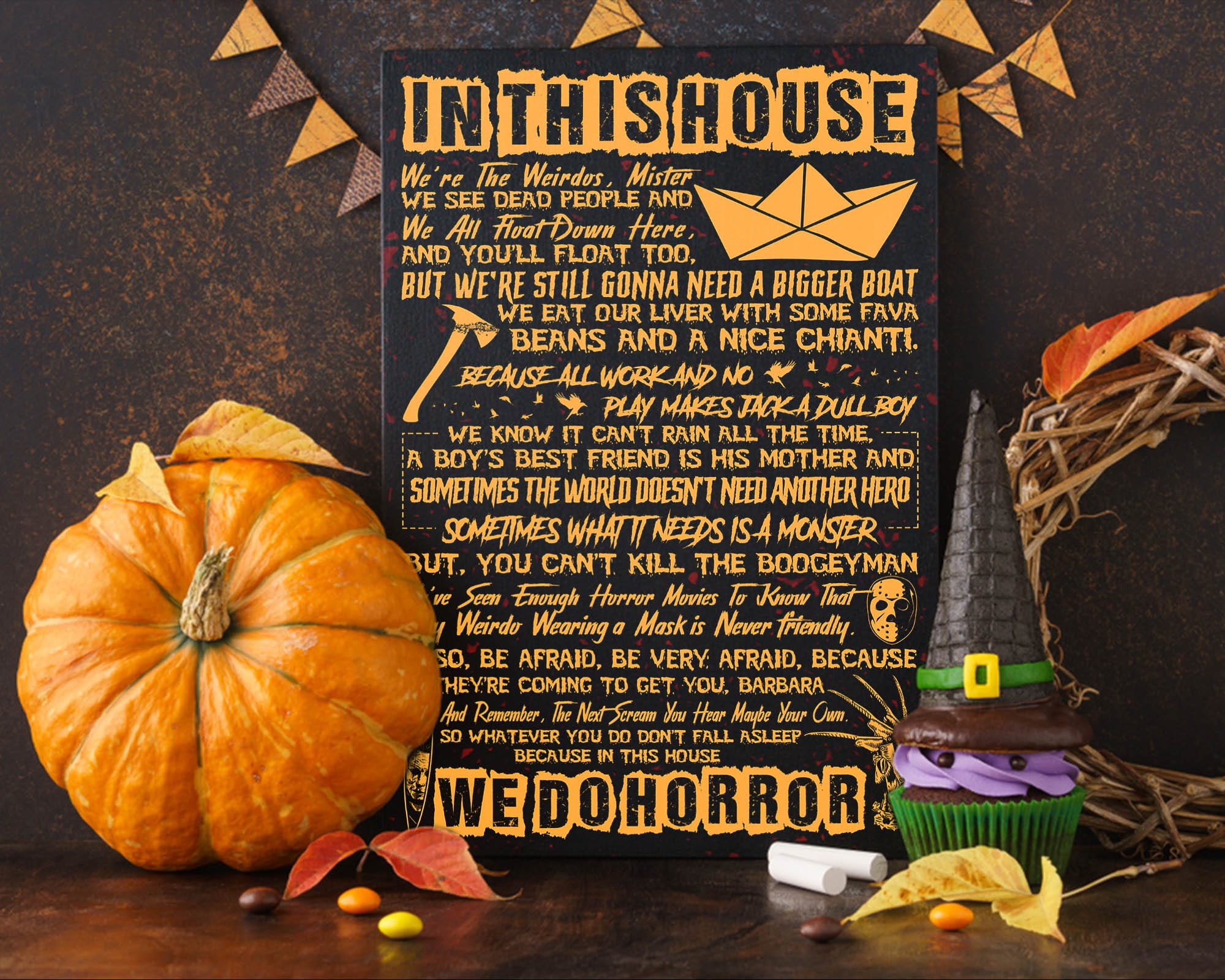 At CubeBik, besides canvases, we also offer tees, hoodies, sweaters, raglans, tanks, wall arts, posters, mugs, blankets, engraved jewelry, personalized necklaces, printed face masks, throw pillows, tote bags, hats, accessories and more on our website, so do not miss our other Horror Wall Art, Horror Movie Wall Art, Horror Posters, Horror Wall Decor, in This House We Do Horror, Horror Movie Poster, Horror 90s Movies, Horror Art, Horror Decor, Horror Decorations related merchandise. Moreover, all the products are made-to-order and one of a kind custom designs you can’t get elsewhere in normal stores. Let’s discover CubeBik.com now and find your favorite personalized items. We can’t wait to surprise and build beautiful memories with you and your loved ones.