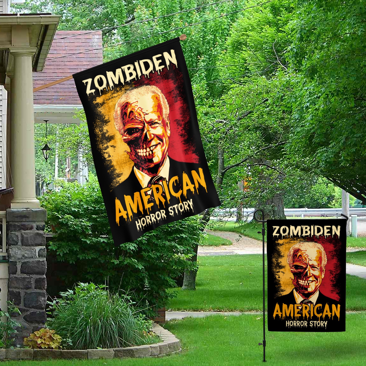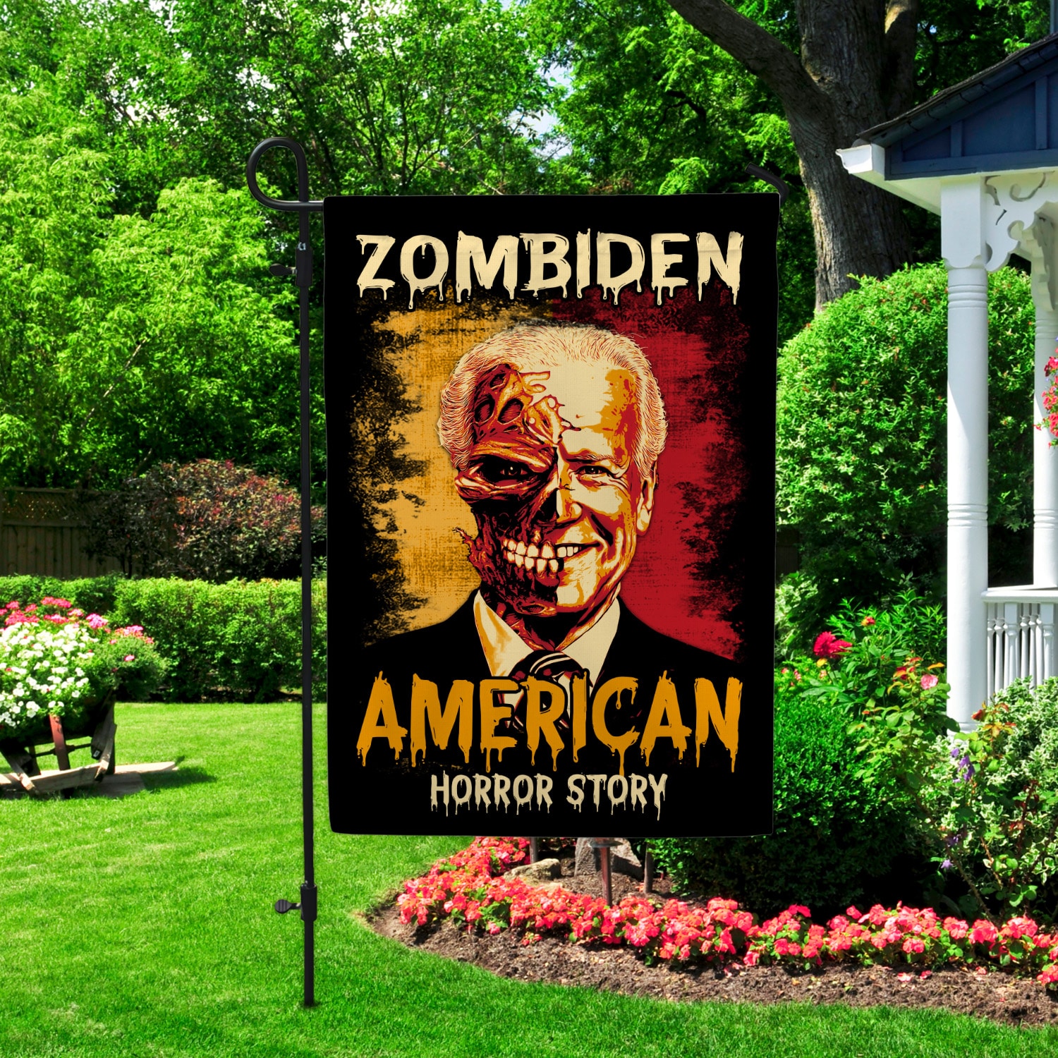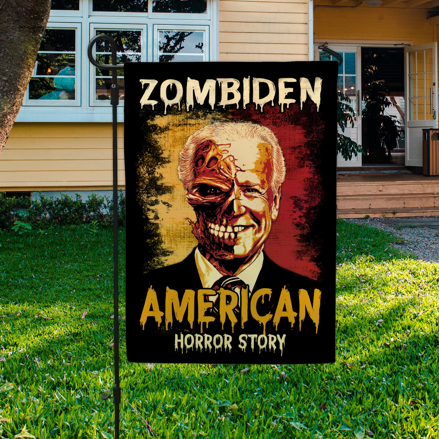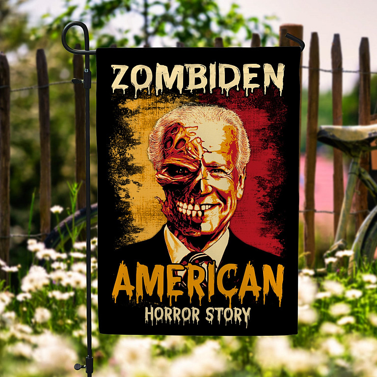 Let’s Shop Zombiden American Horror Story Joe Biden Zombie Halloween Decorative Sign Flag – Funny Horror Biden Halloween Garden House Sign Flag!