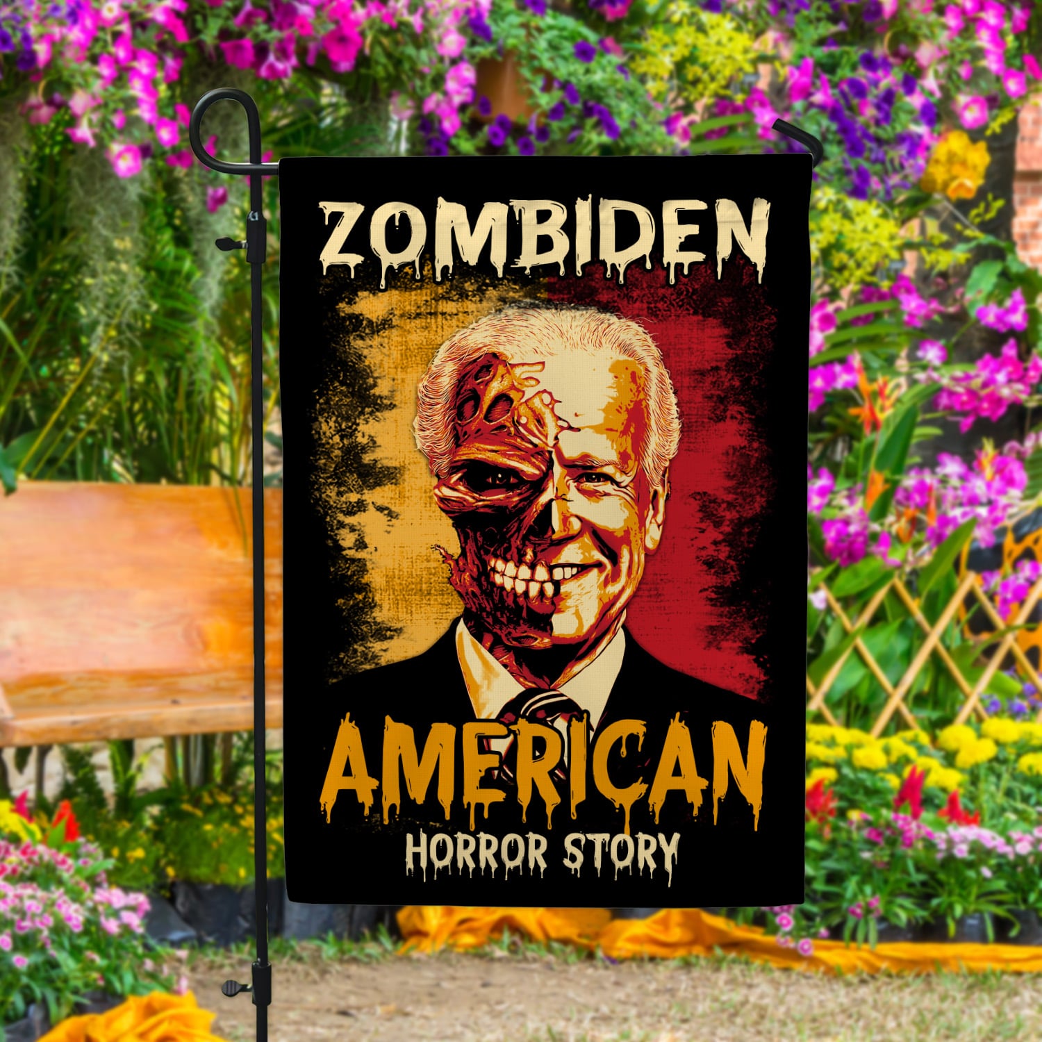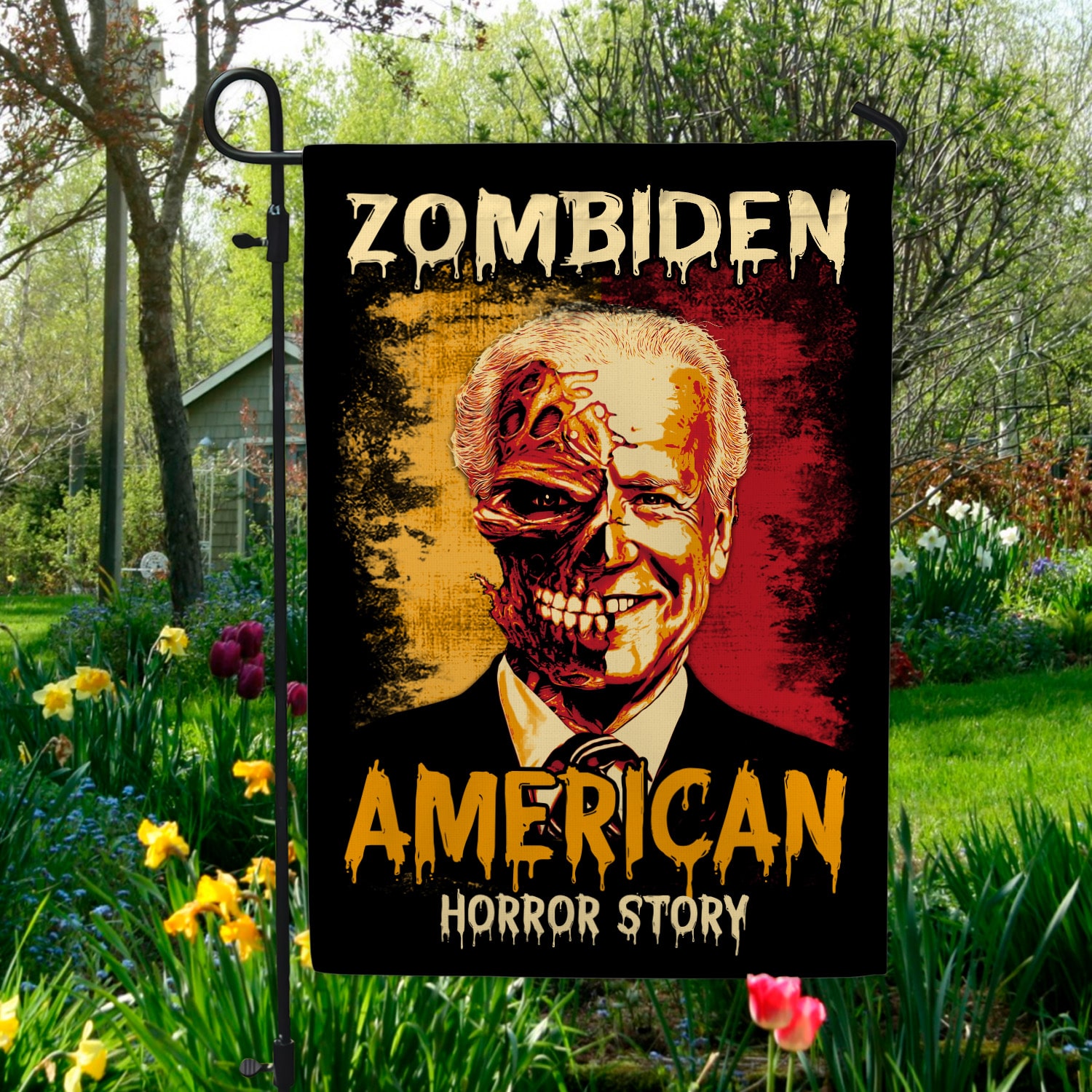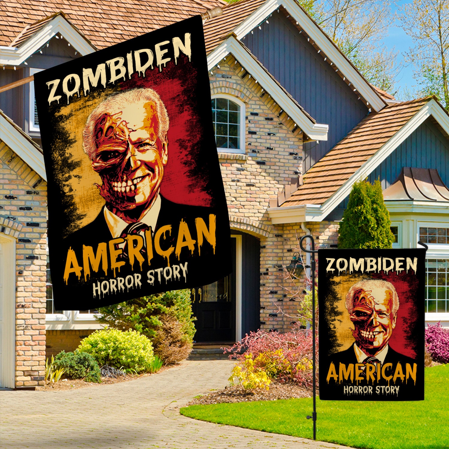 Let’s Shop Zombiden American Horror Story Joe Biden Zombie Halloween Decorative Sign Flag – Funny Horror Biden Halloween Garden House Sign Flag!