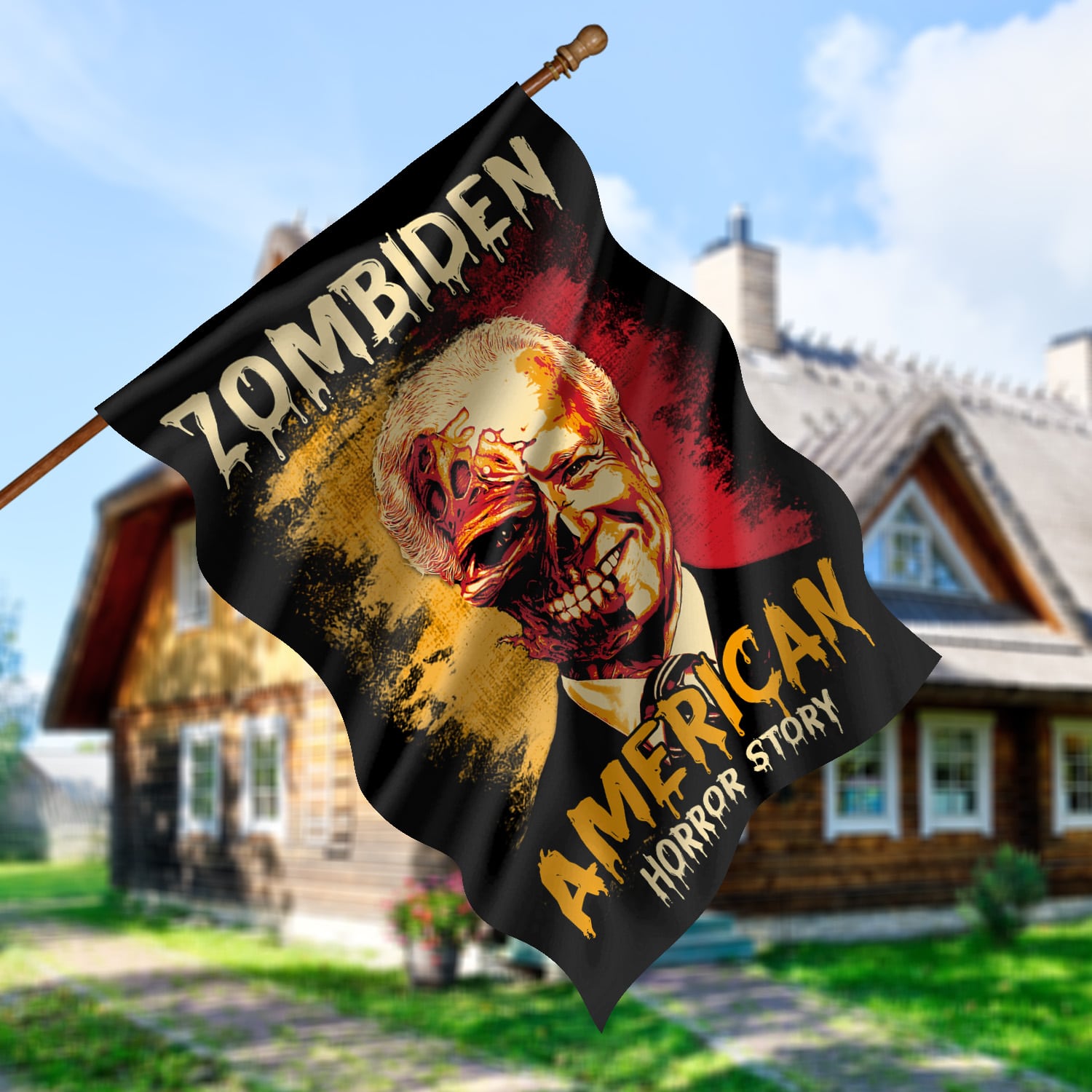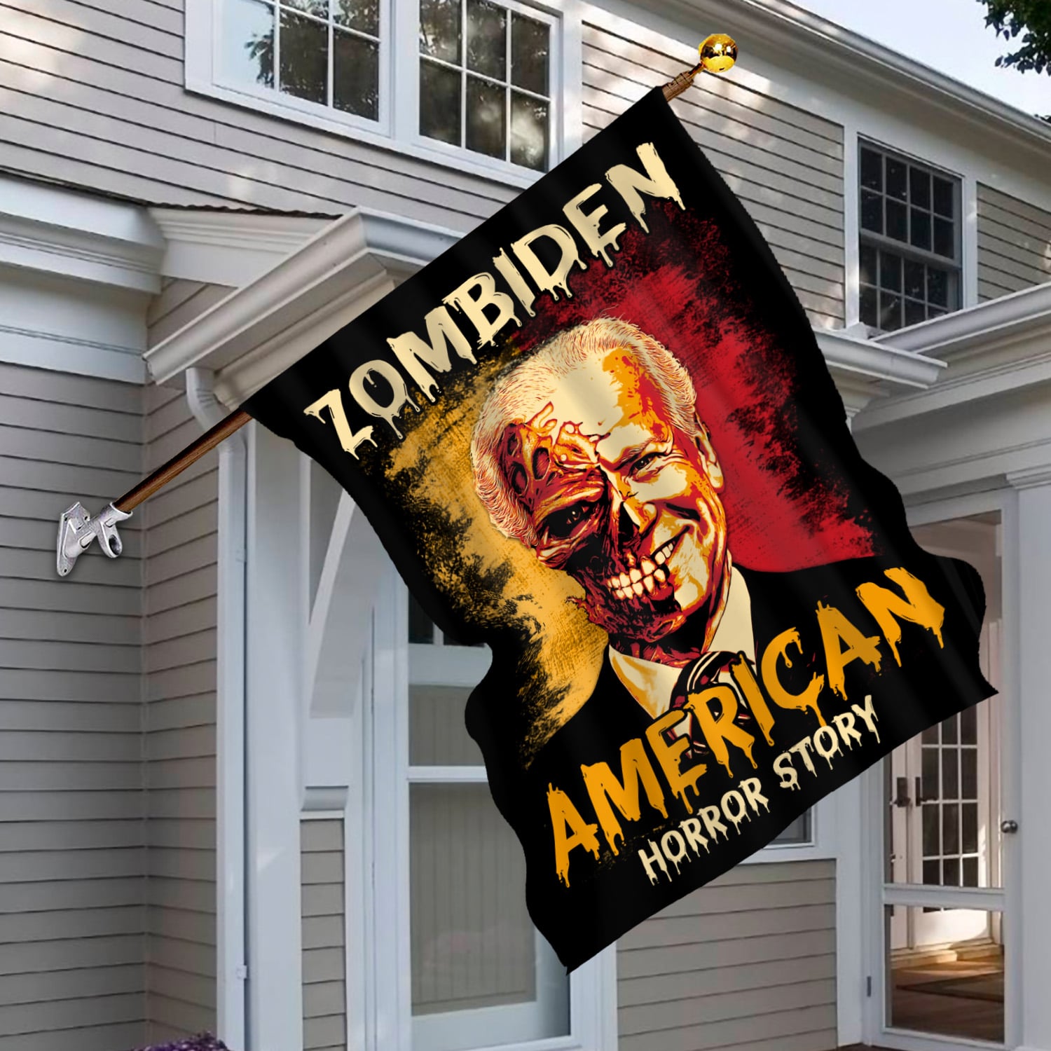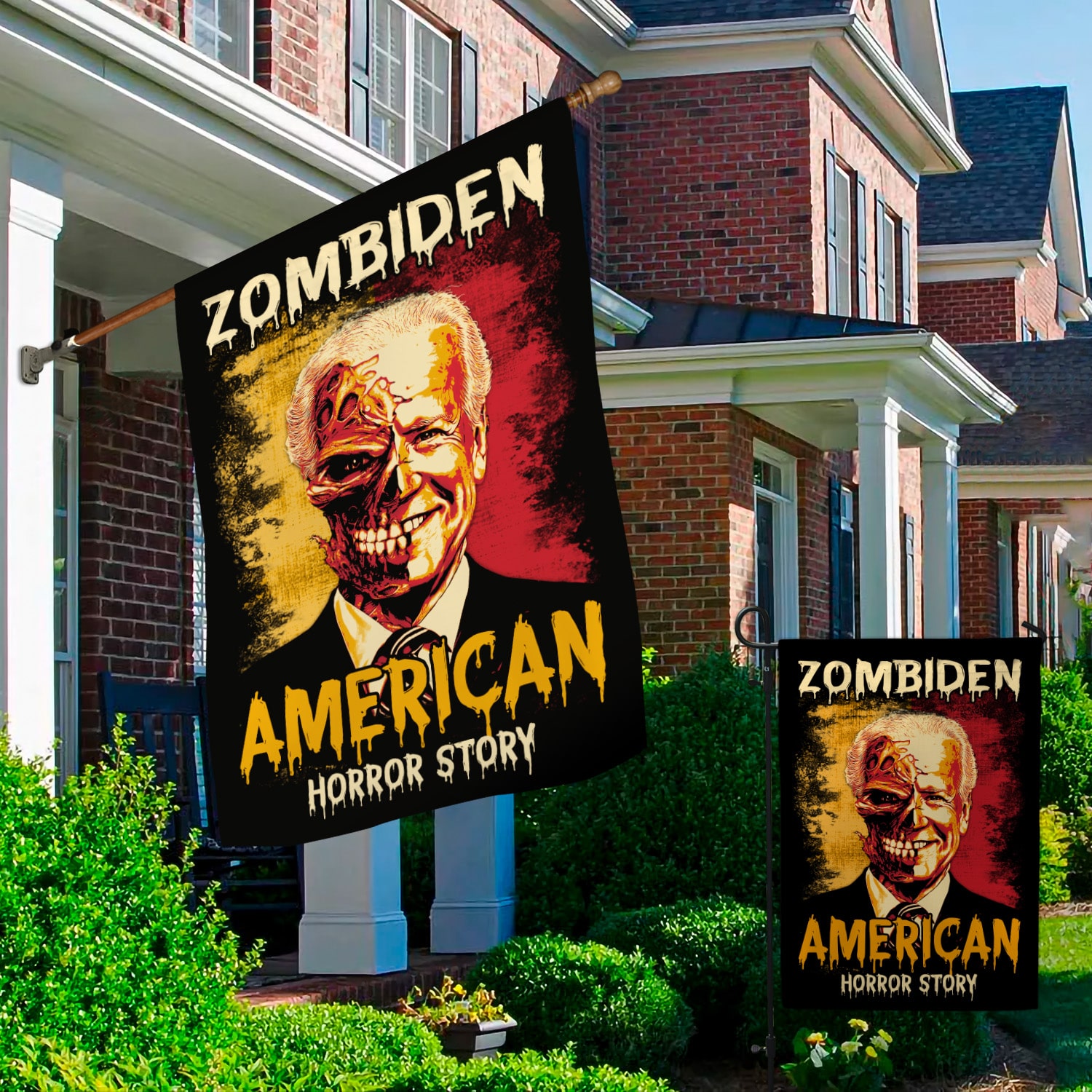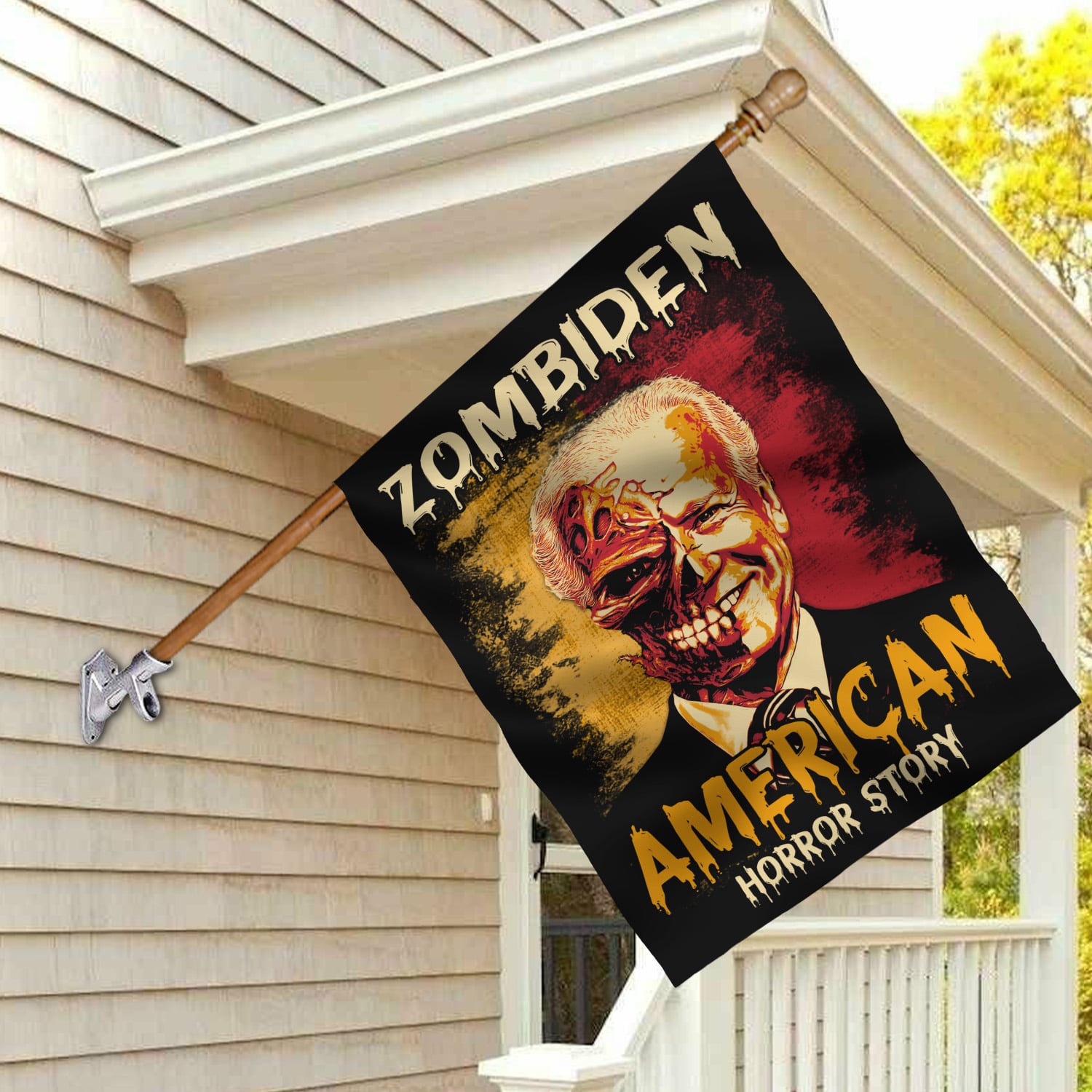 Let’s Shop Zombiden American Horror Story Joe Biden Zombie Halloween Decorative Sign Flag – Funny Horror Biden Halloween Garden House Sign Flag!