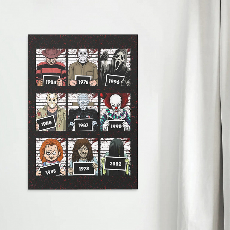 Let’s Shop Horror Movie Characters Suspects Friends Unframed Poster – Horror Prison Squad Mugshot Framed Canvas Prints!