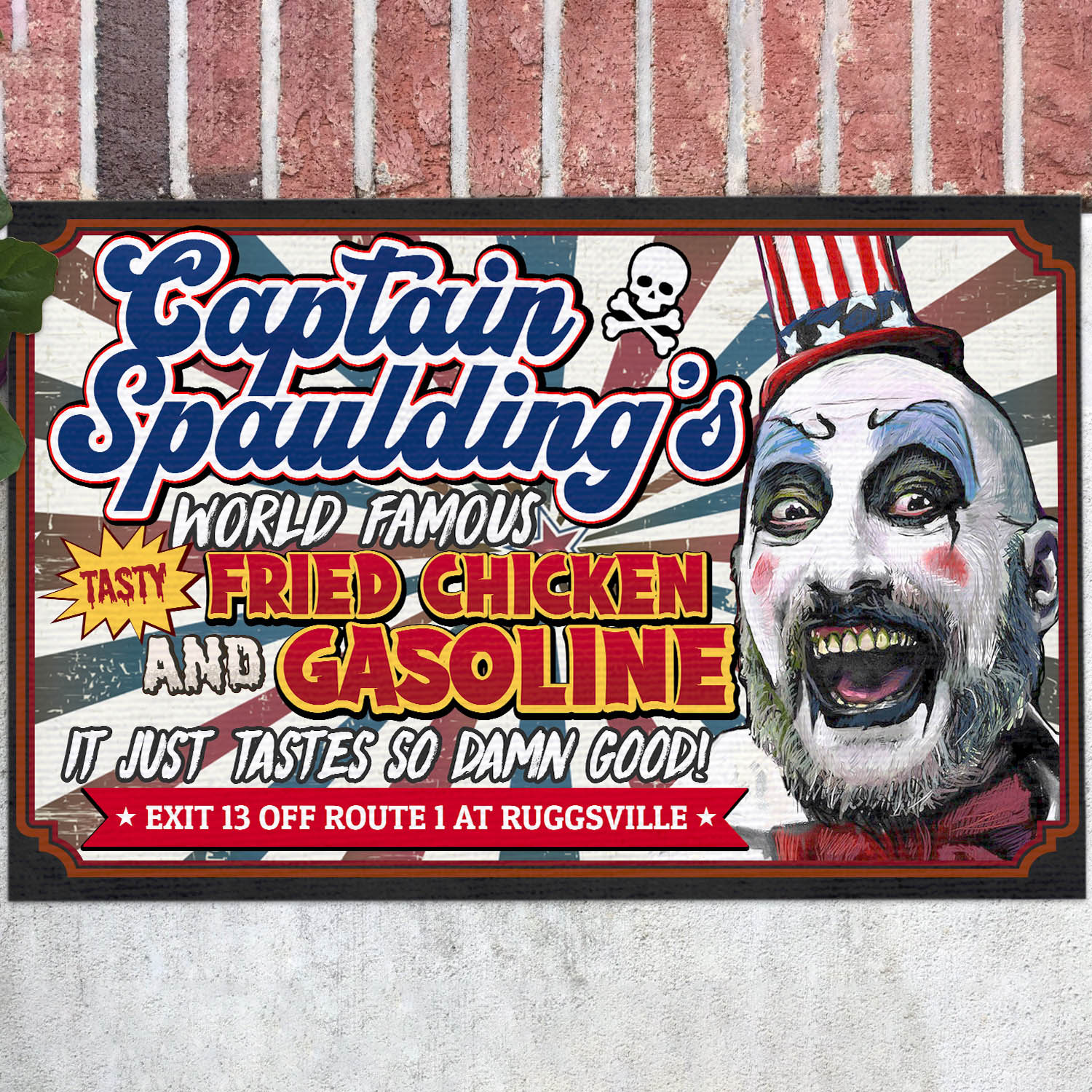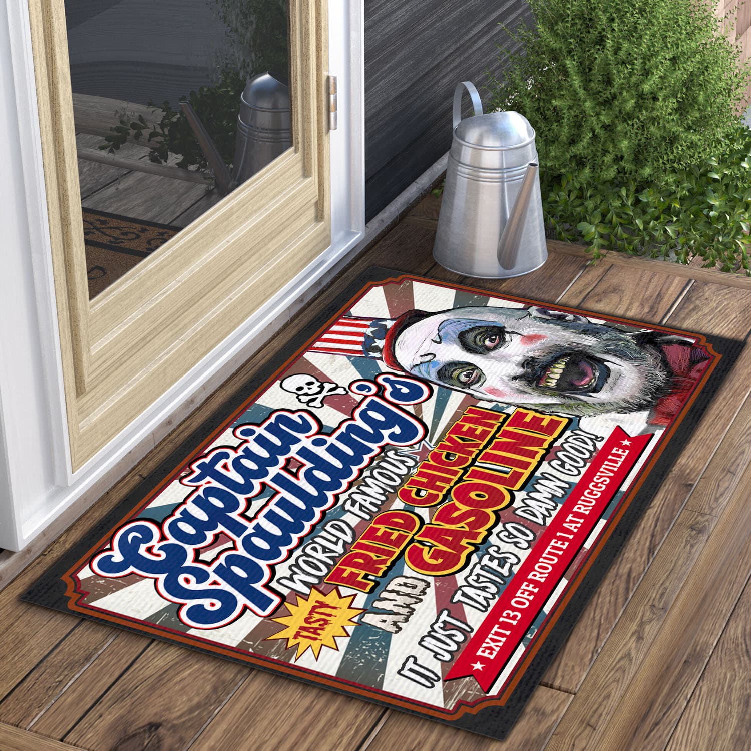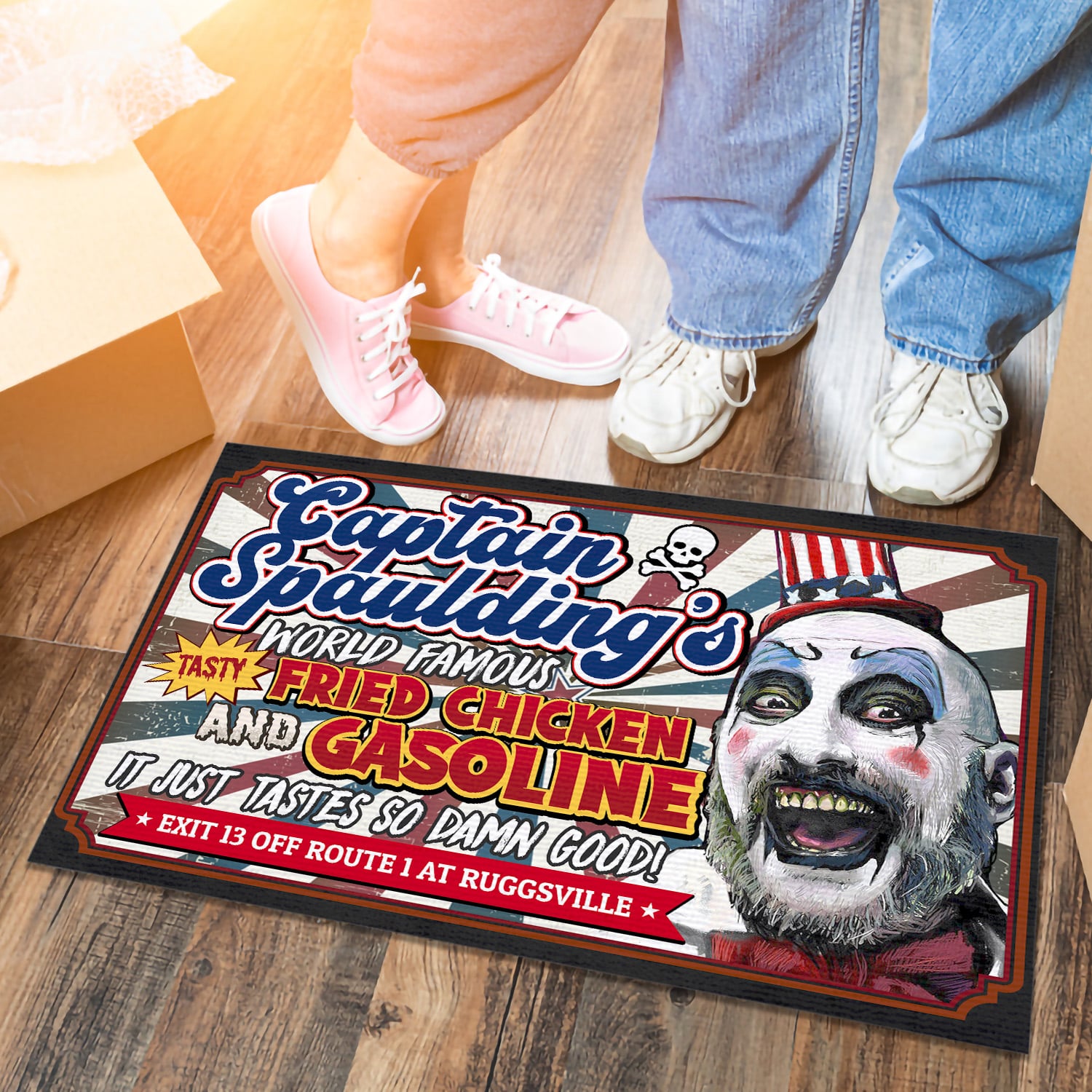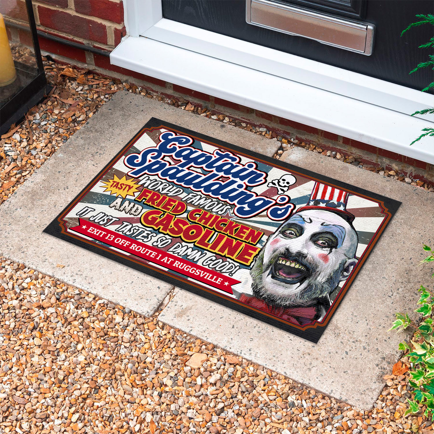 Let’s Shop Captain Spaulding’s World Famous Tasty Fried Chicken and Gasoline Doormat – Halloween Character Indoor Outdoor Doormat!
