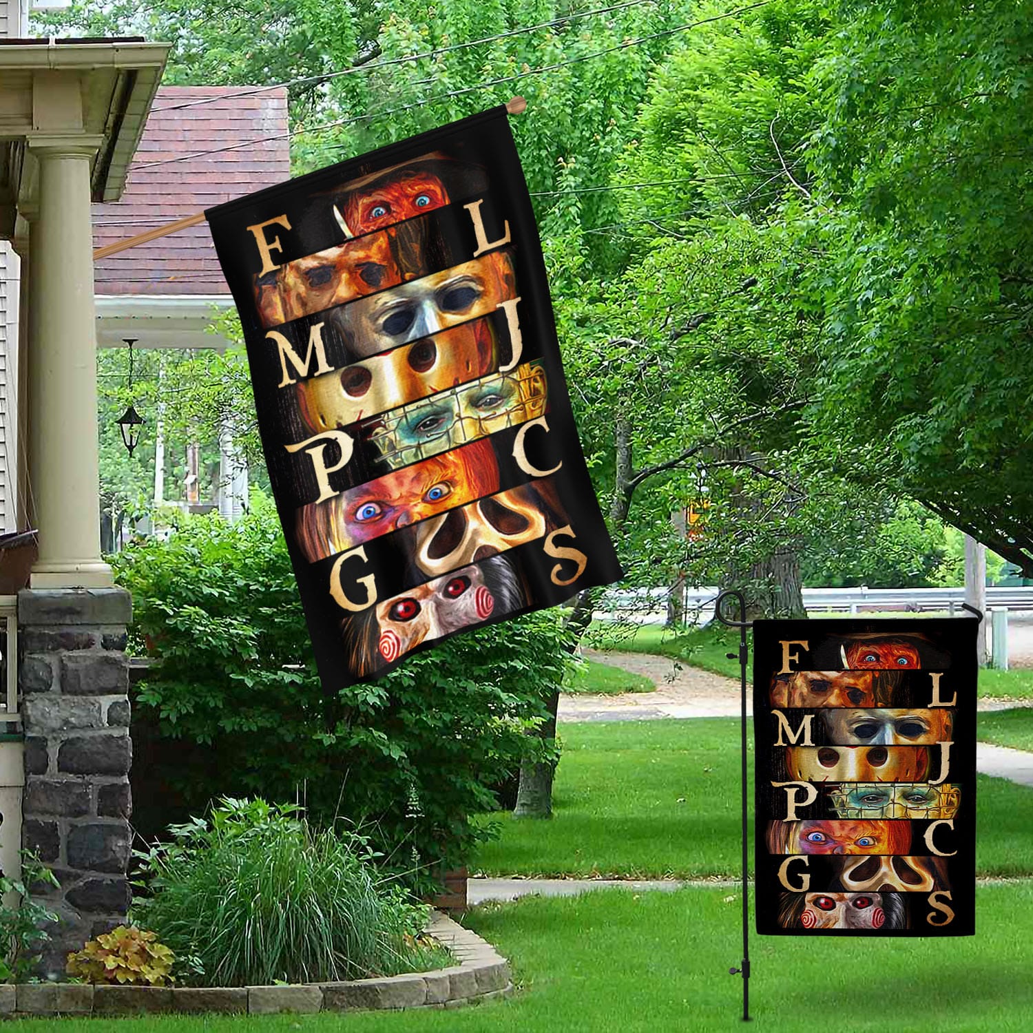 Are you spending too much time to find creative merchandise for you or suitable & special gifts for your mommy, your daddy, your son, your daughter, your children, your friends or someone you love? The struggle is over because we have various Halloween Horror Movie Characters Outdoor Indoor Decorative Garden Flag – House Flag – Wall Flag, Horror Garden Flag, Horror Flag, Horror Yard Flag, Horror Movie Flag, Halloween Flag, Halloween Garden Flag, Halloween Home Decor, Halloween Gifts which will make perfect presents for your beloveds. In order to make your present stand out, we have created lots of unique and awesome customized photo gifts & personalized designs.
