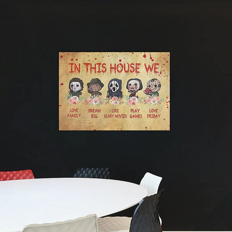 Let’s Shop Horror Movies In This House We Love Family Dream Big Framed Canvas Prints – Halloween Movies Unframed Poster!