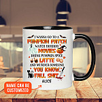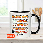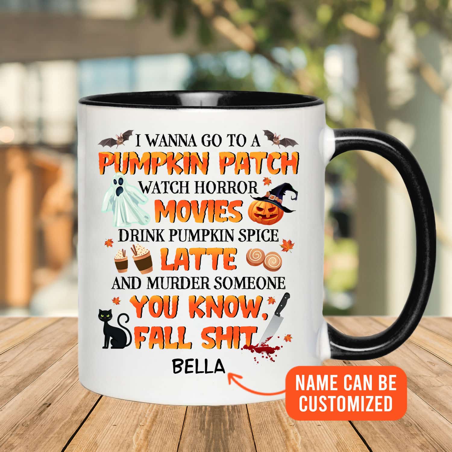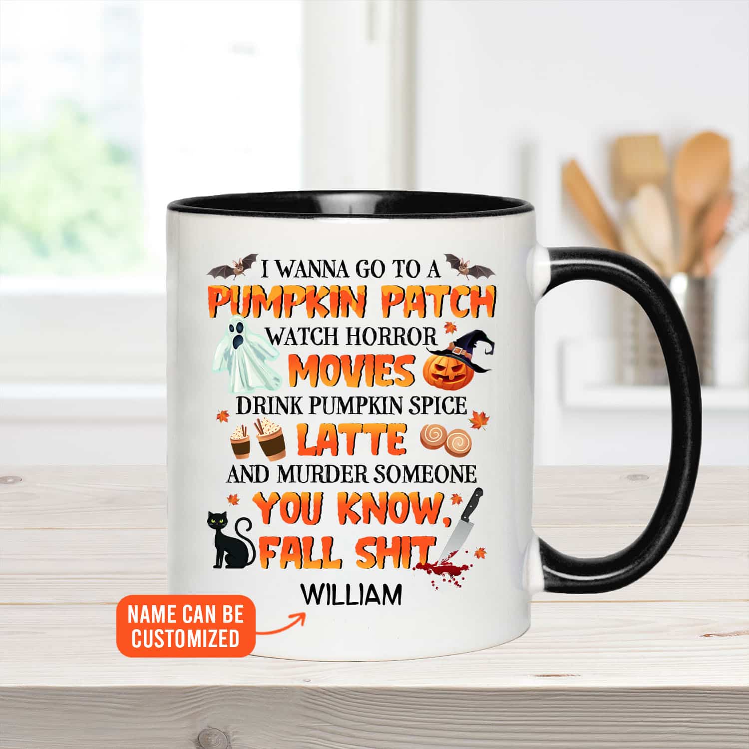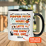Let’s Shop Personalized Name I Wanna Go To a Pumpkin Patch Watch Horror Movies Double-Sided Accent Coffee Mug!