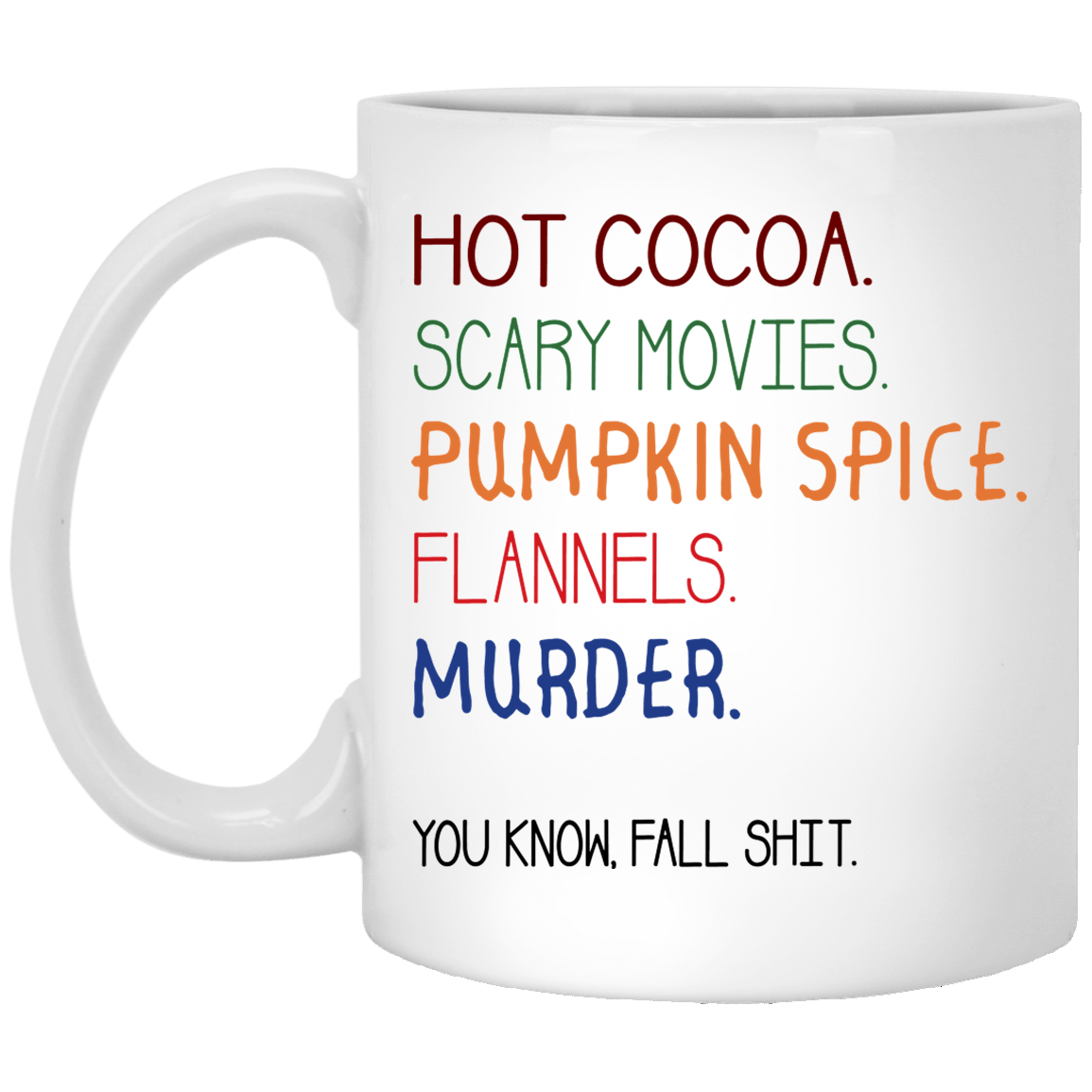 Shop Hot Cocoa Scary Movies Pumpkin Spice Flannels Murder Halloween Mug – Travel Mug – Beer Stein – Water Bottle.