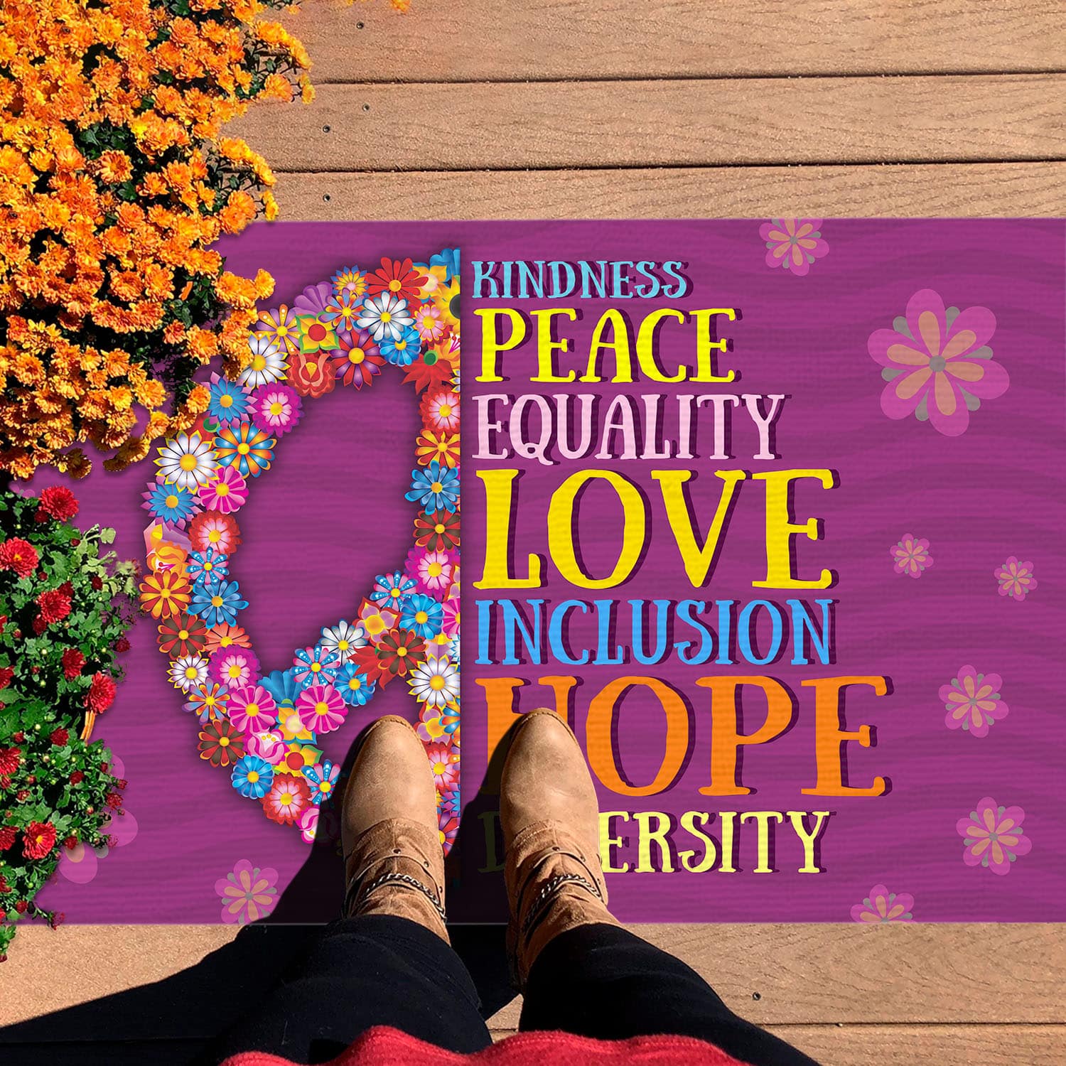 Are you spending too much time to find creative merchandise for you or suitable & special gifts for your mommy, your daddy, your son, your daughter, your children, your friends or someone you love? The struggle is over because we have various Pride Doormat, Kindness Peace Equality Love Inclusion Hope Diversity Flag, Human Rights Doormat, Doormat Peace, Doormat Pride, Diversity Doormat, Peace and Kindness, Diversity Doormat, We Believe Black Lives Matter No Human Is Illegal, Science Garden Doormat which will make perfect presents for your beloveds. In order to make your present stand out, we have created lots of unique and awesome customized photo gifts & personalized designs.