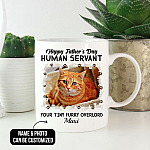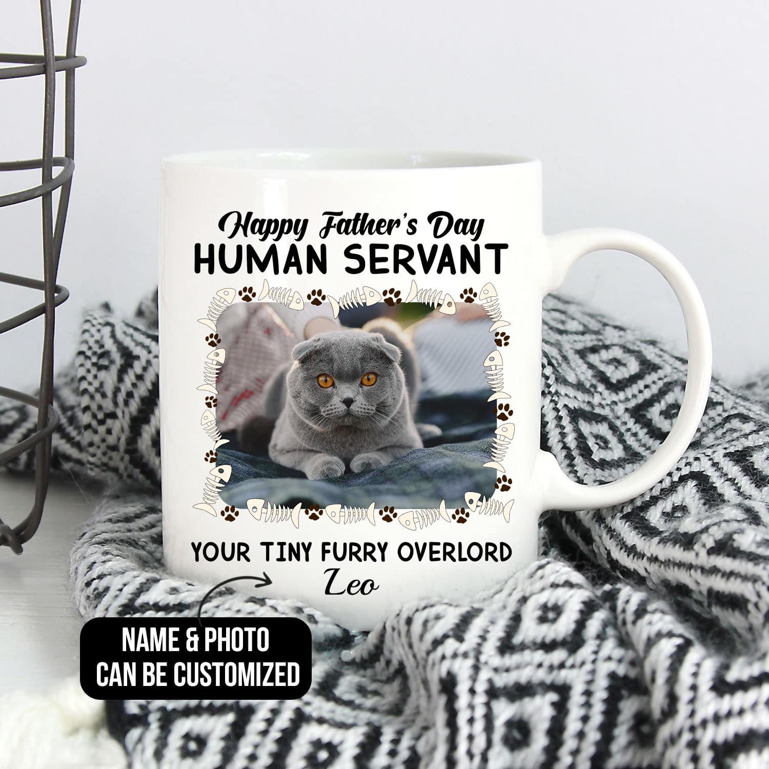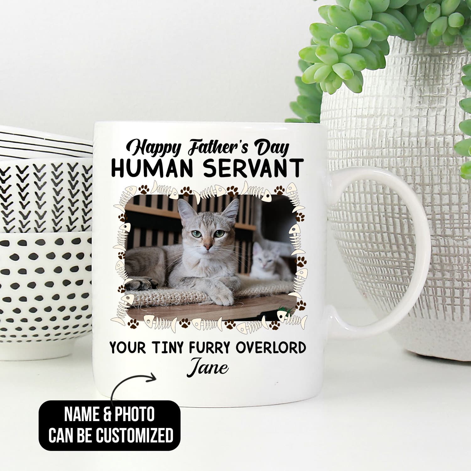 Let’s Shop Personalized Photo Happy Father’s Day Human Servant Your Tiny Furry Overlord Cat Dad Ceramic Coffee Mug!
