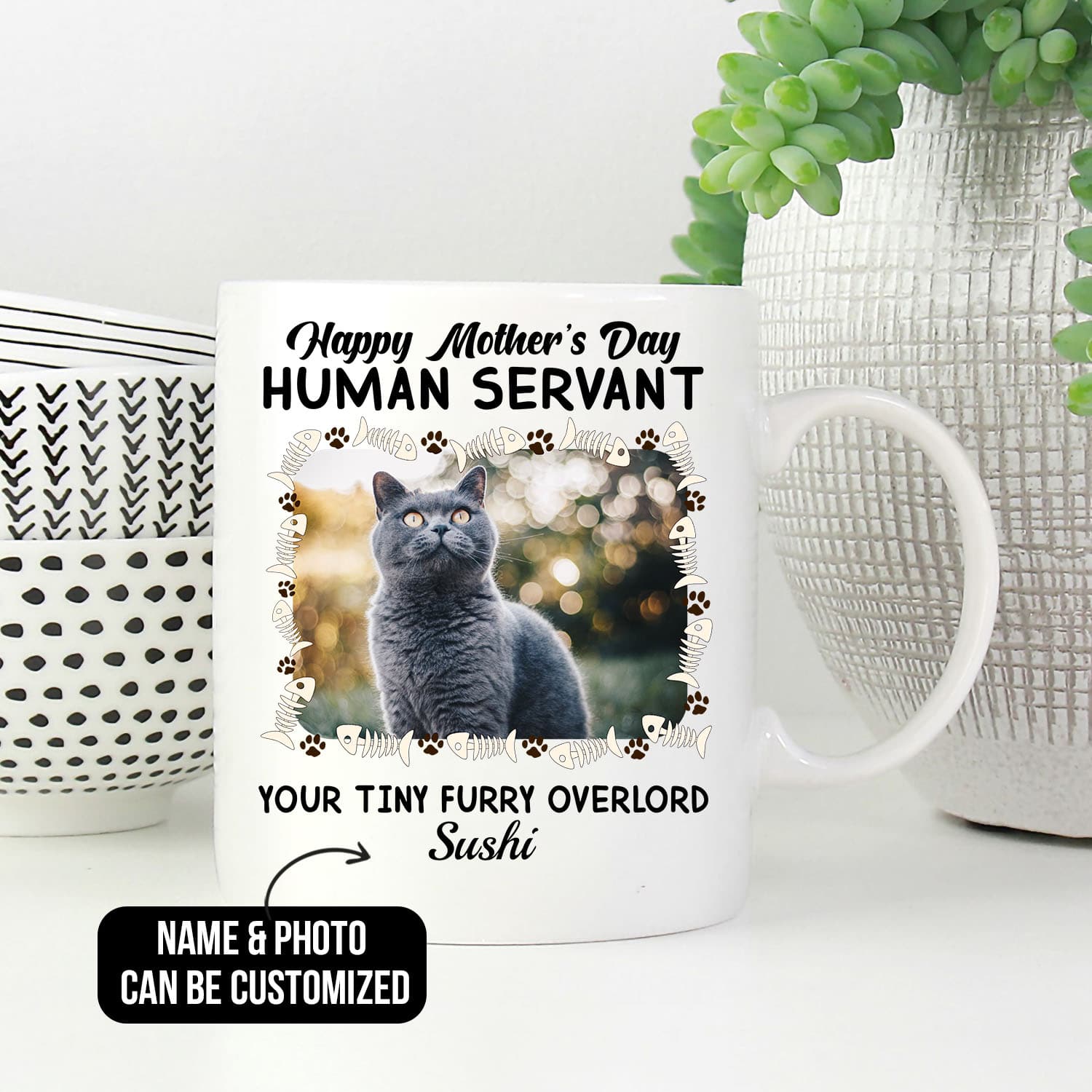 Let’s Shop Personalized Photo Happy Mother’s Day Human Servant Your Tiny Furry Overlord Cat Mom Ceramic Coffee Mug!