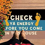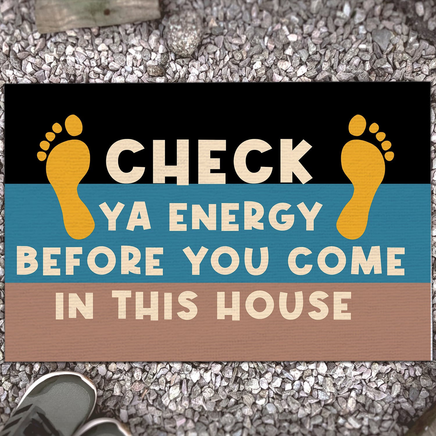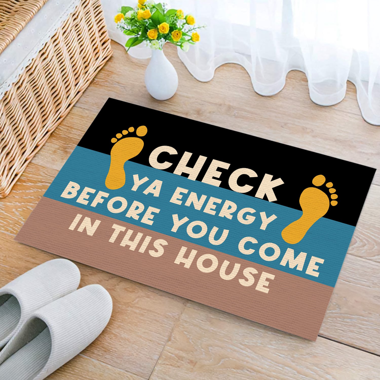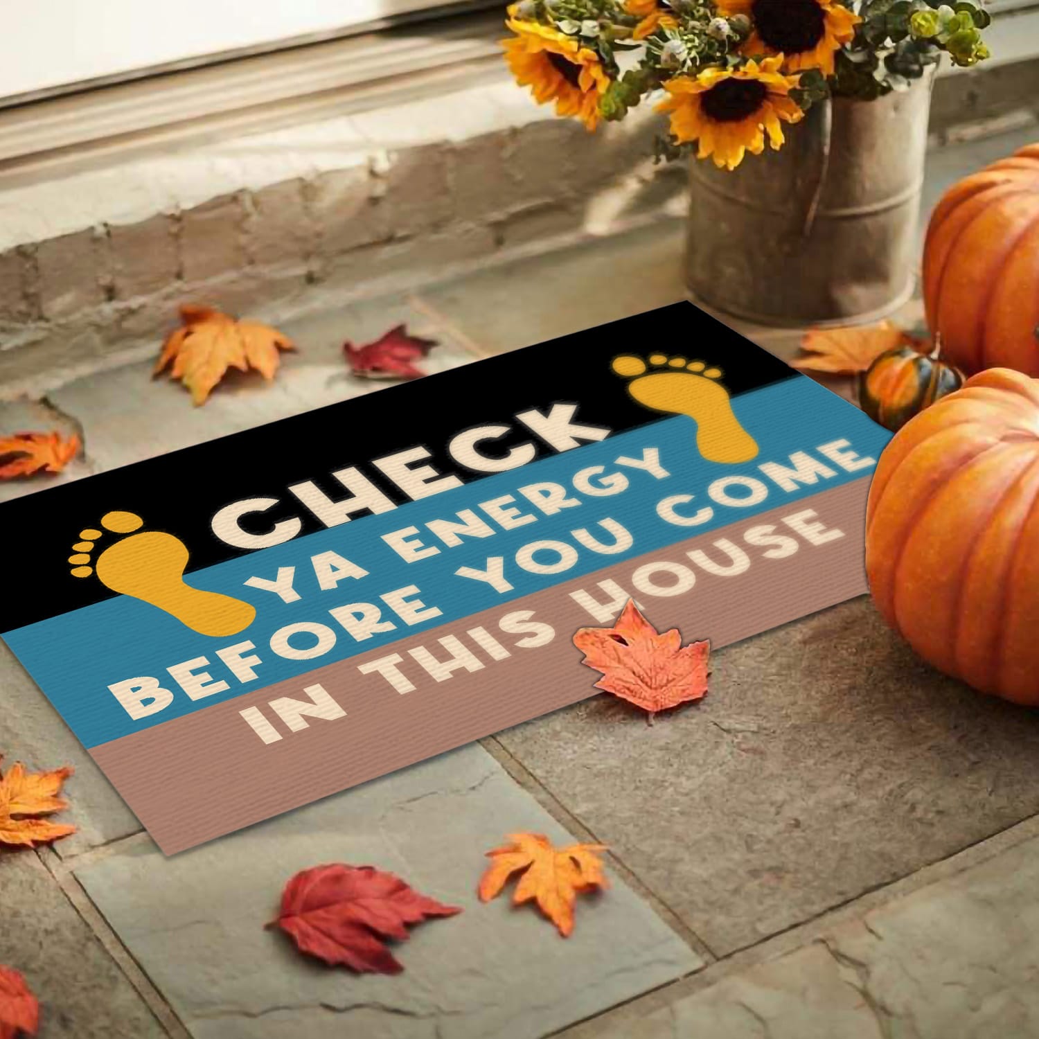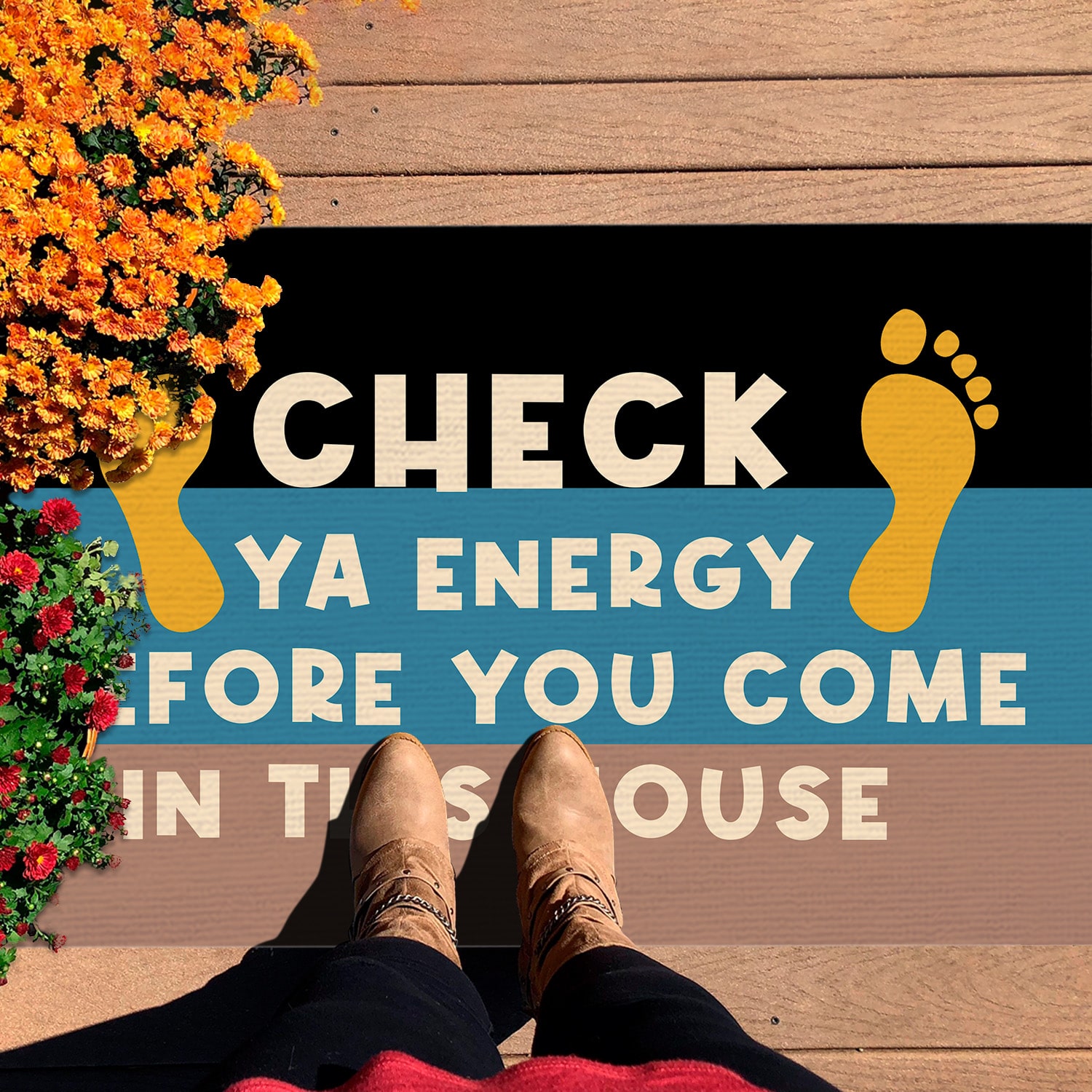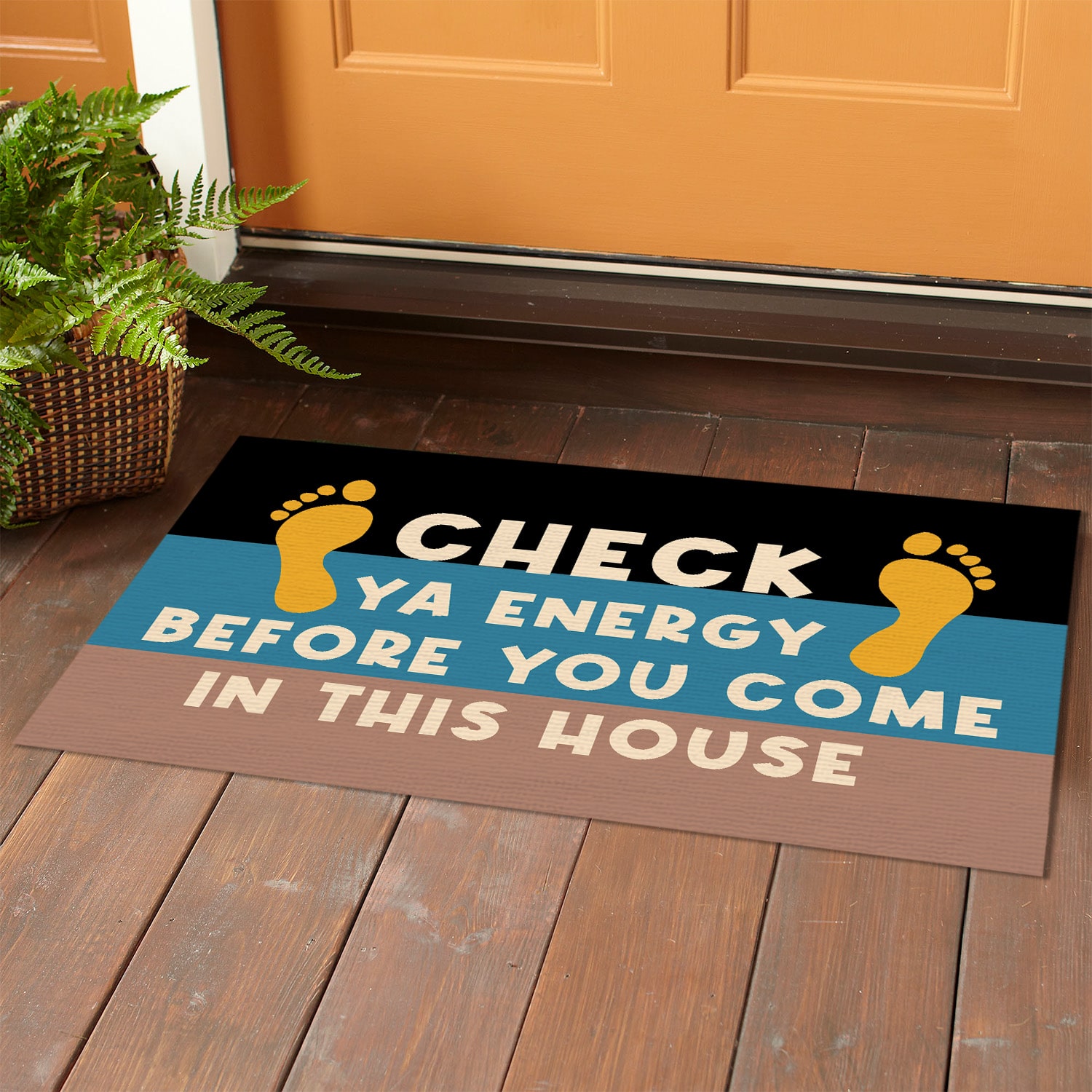 Let’s Shop Check Ya Energy Before You Come in This House – Funny Welcome Rug – Outdoor Decorative Doormat!