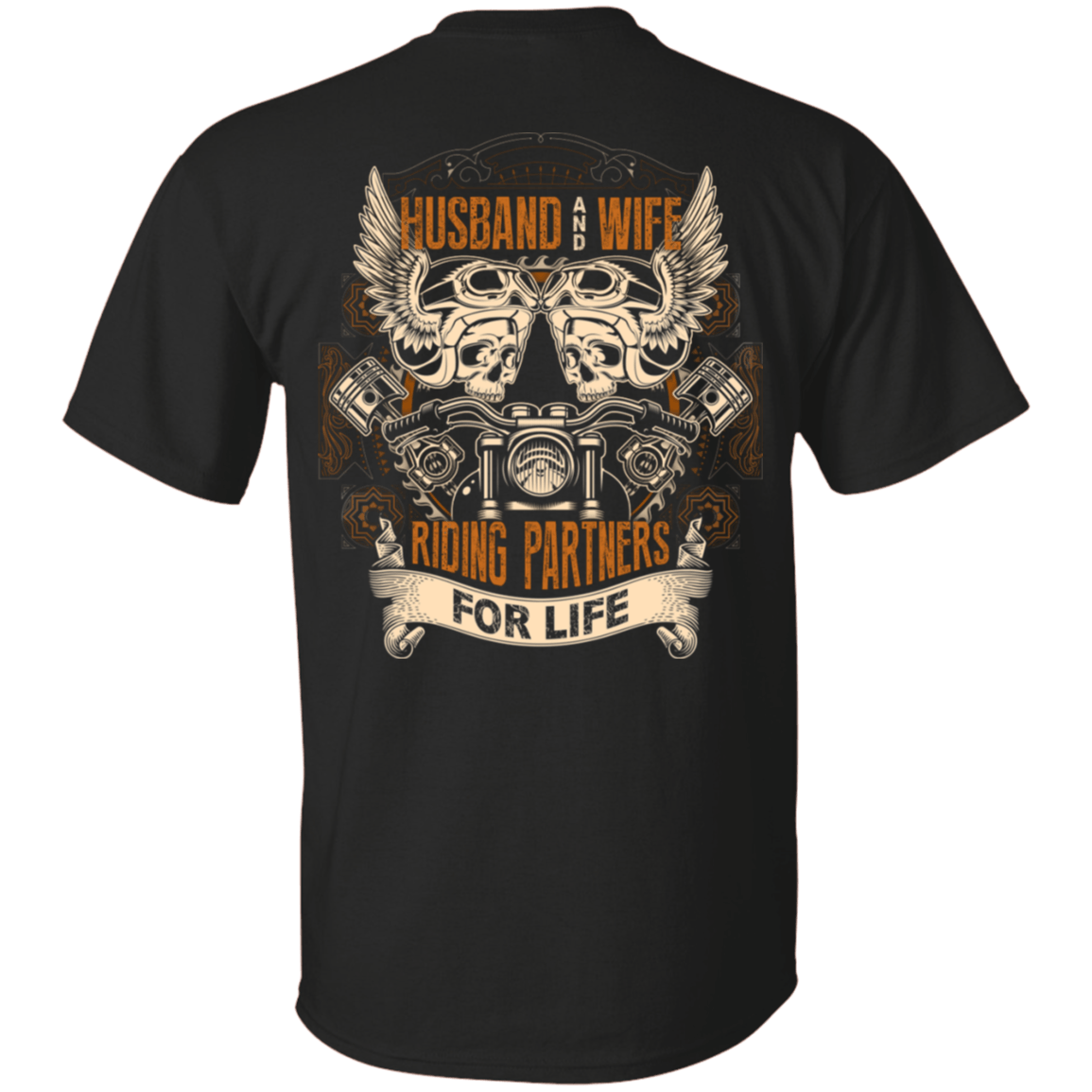 Husband and Wife Riding Partners For Life Skull Print On Back T-Shirt