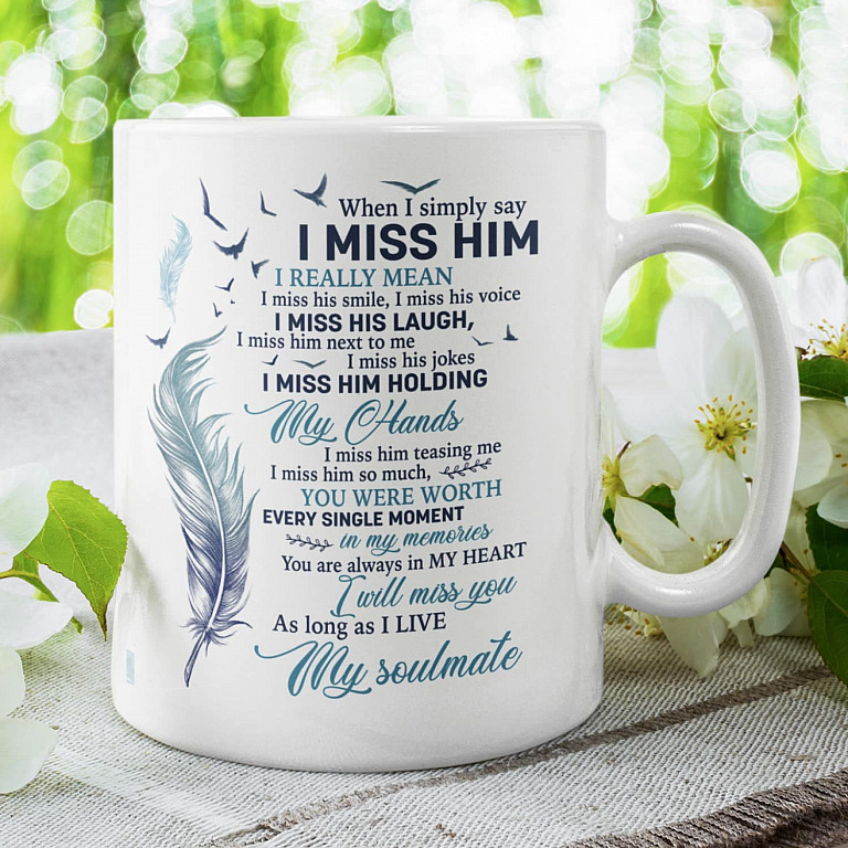 Let’s Shop Feather When I Simply Say I Miss Him Husband Wings Memorial Coffee Mug – Husband In Heaven Travel Bottle!
