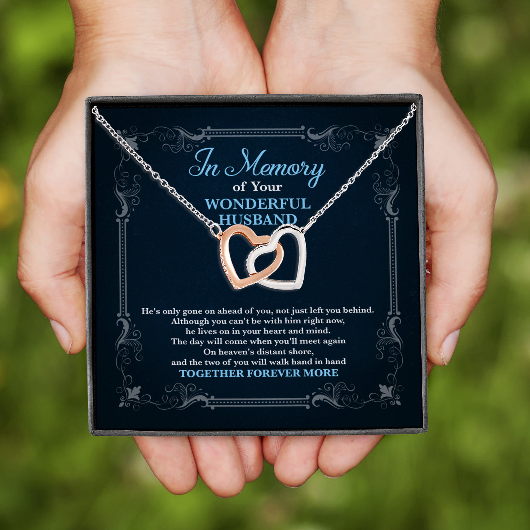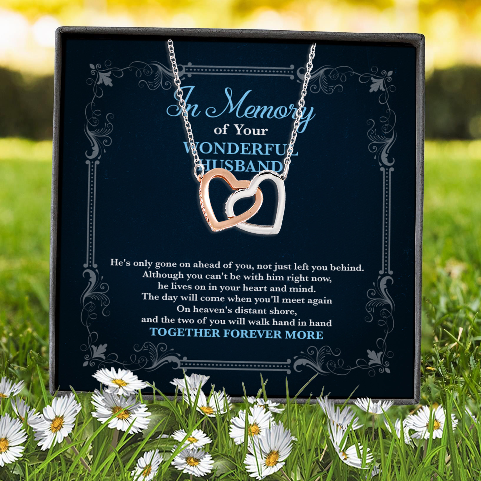 Let’s Shop In Memory Of Your Wonderful Husband He’s Only Gone On Ahead Of You Interlocking Hearts Pendant Necklace!