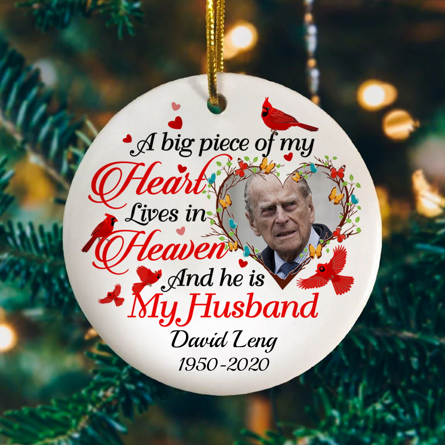 Let’s Shop Personalized Custom Photo Red Cardinal Husband Memorial A Big Of My Heart Lives In Heaven Circle Ornament!
