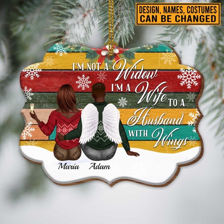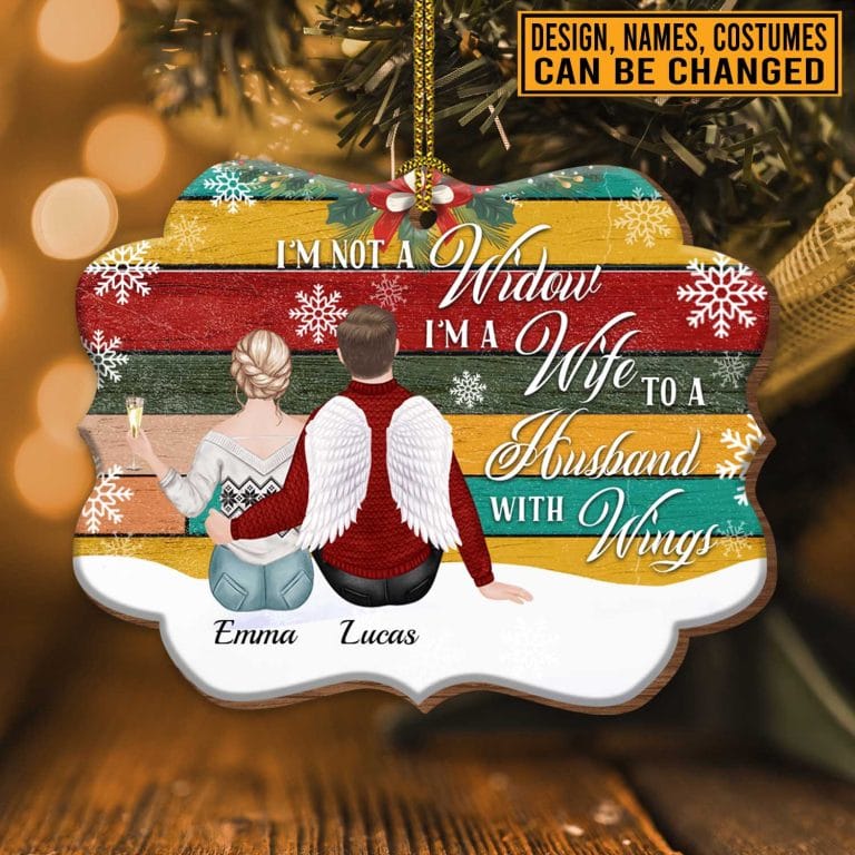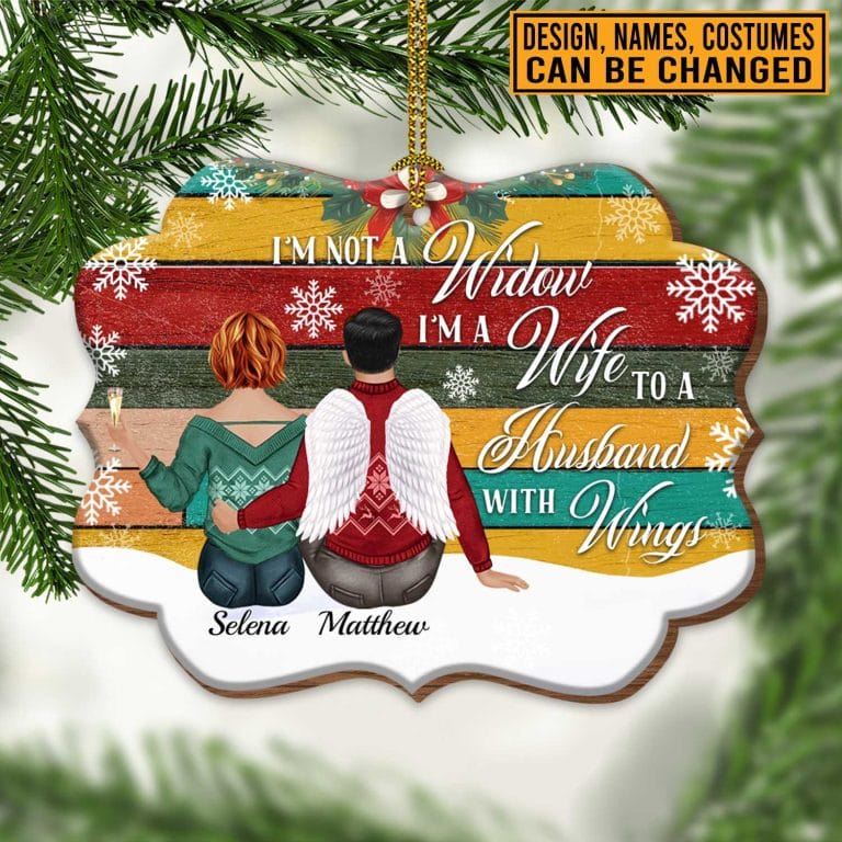 Let’s Shop Personalized I’m Not A Widow I’m A Wife To A Husband With Wings Custom Shaped Wooden Christmas Ornament!