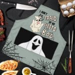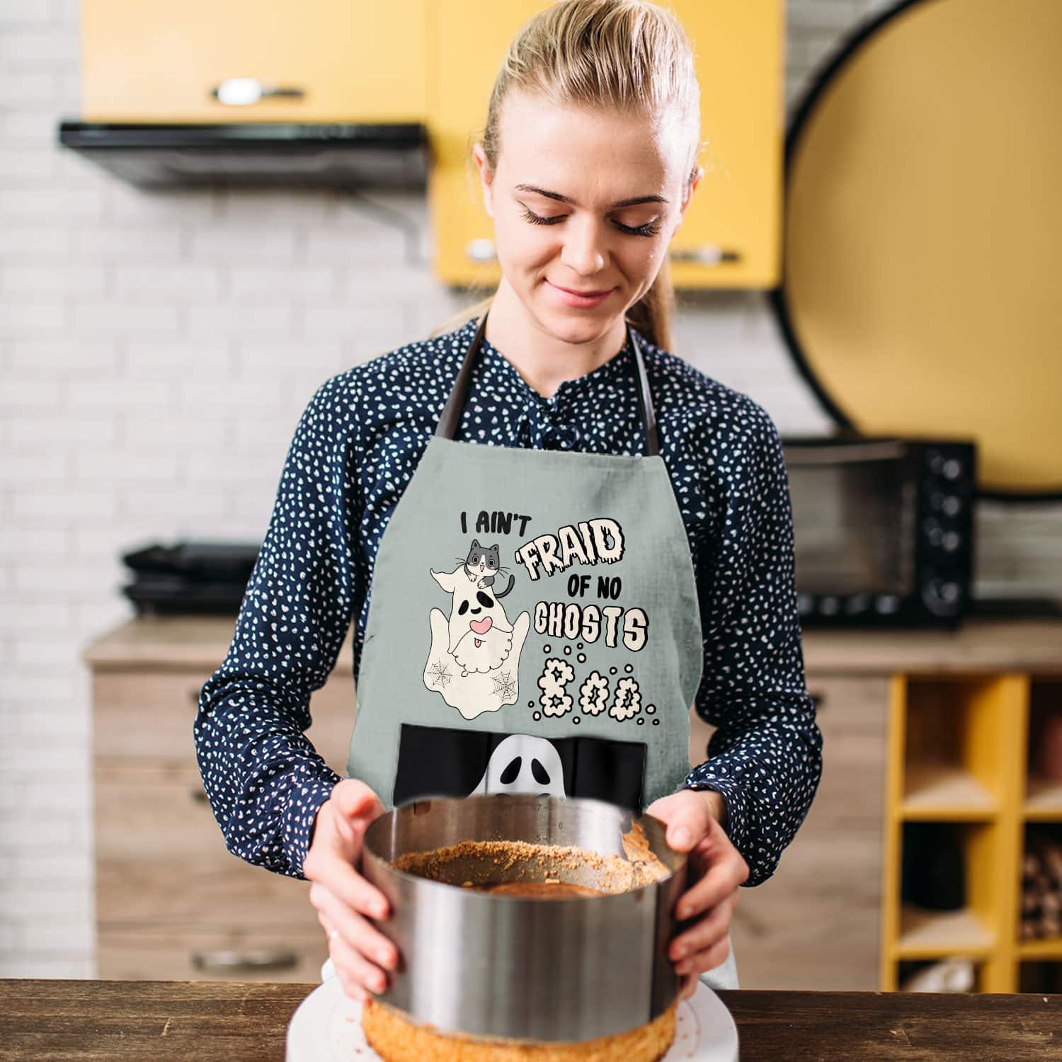Let’s Shop I Ain’t Afraid Of No Ghosts Gnome Boo Ghost Cooking Apron With 3 Pockets – Funny Halloween Apron!