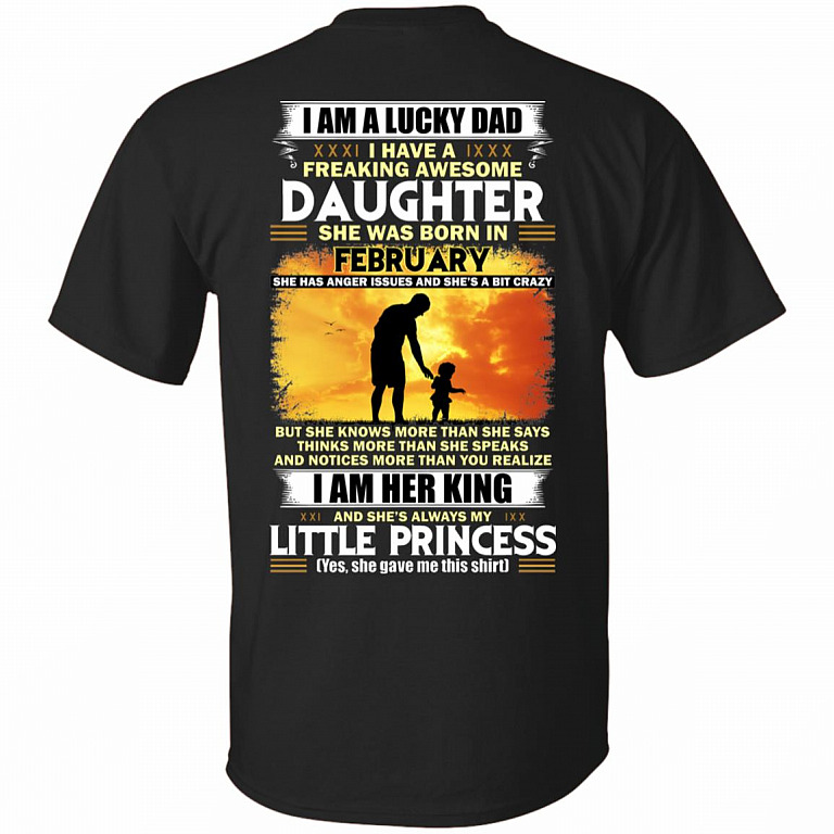 I Am A Lucky Dad I Have A Freaking Awesome Daughter She was Born in February Print On Back T-Shirt