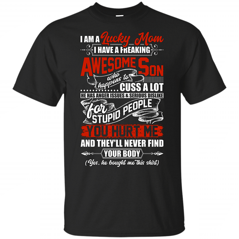 I Am A Lucky Mom I Have A Freaking Awesome Son Who Cuss A Lot And Dislike Stupid People T-shirt – V-neck Tee