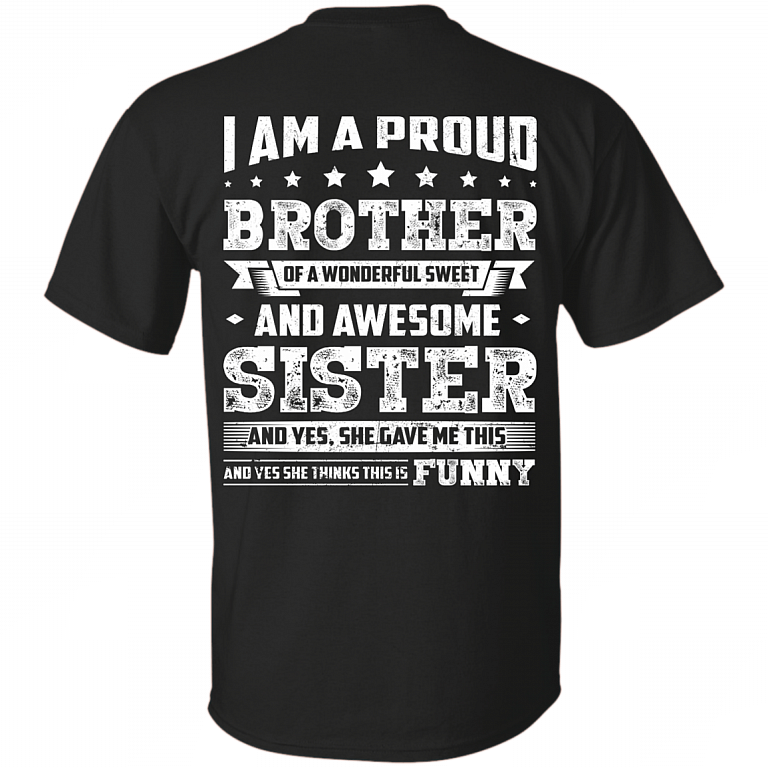 I Am A Proud Brother of A Wonderful Sweet and Awesome Sister Print On Back T-Shirt
