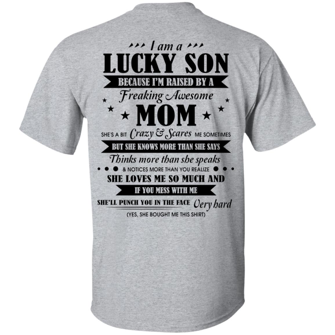 I Am Lucky Son Because I’m Raised By Freaking Awesome Mom Print On Back T-Shirt