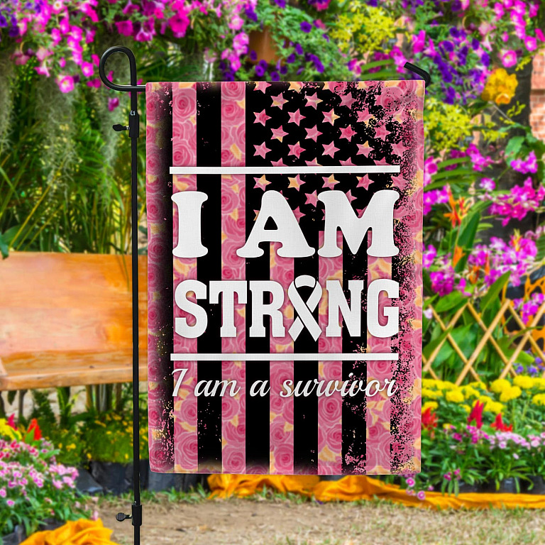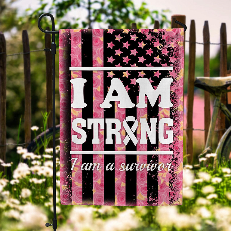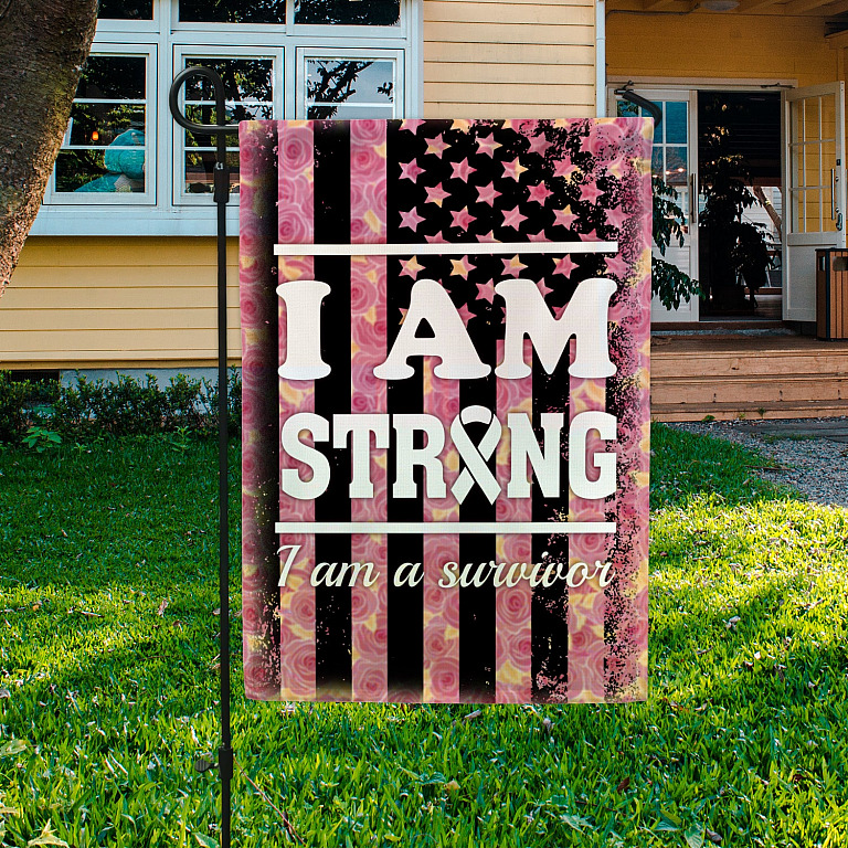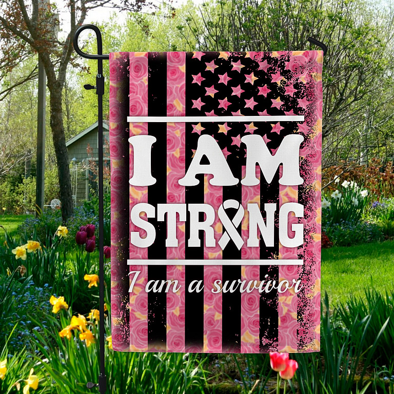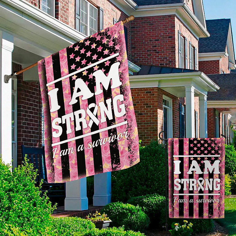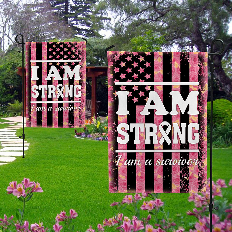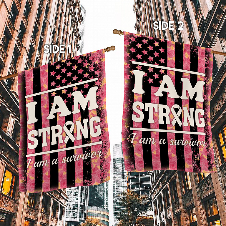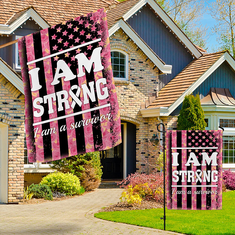 Let’s Shop I Am Strong I Am a Survivor Breast Cancer Awareness Garden Flag – House Flag – Wall Flag!