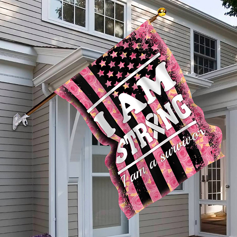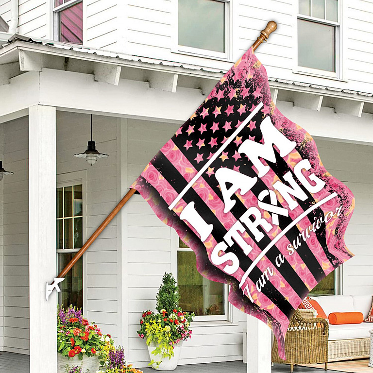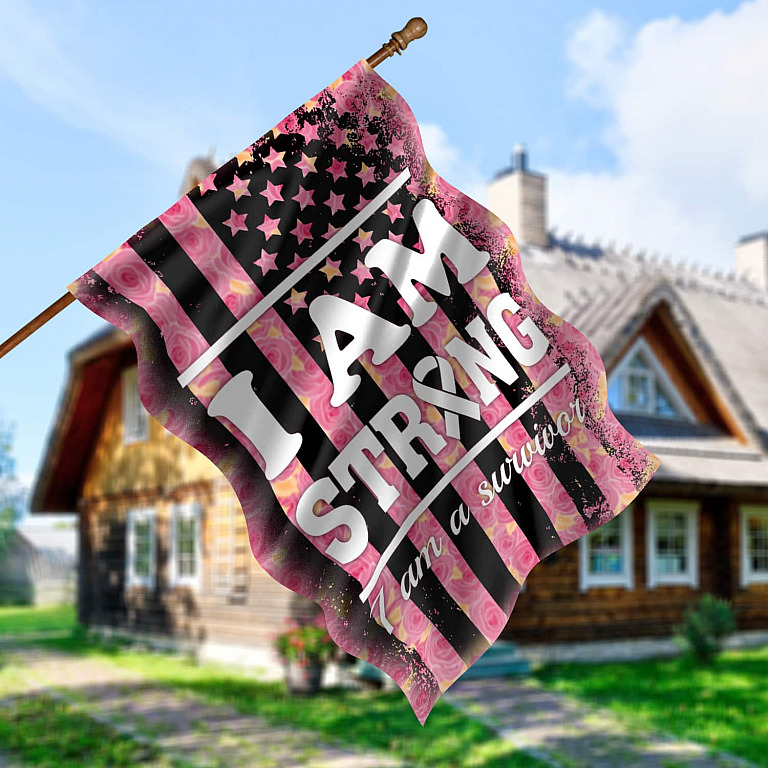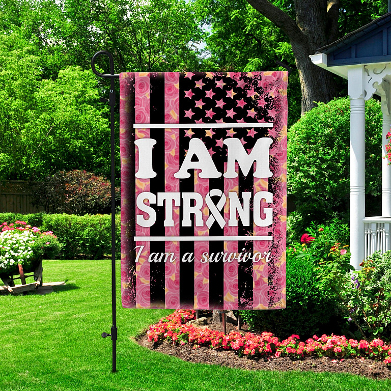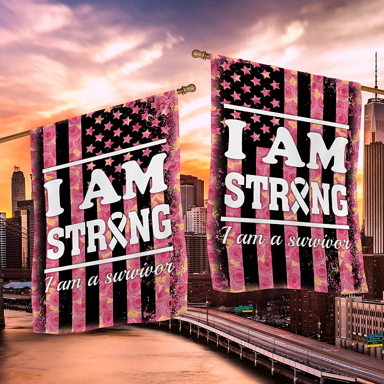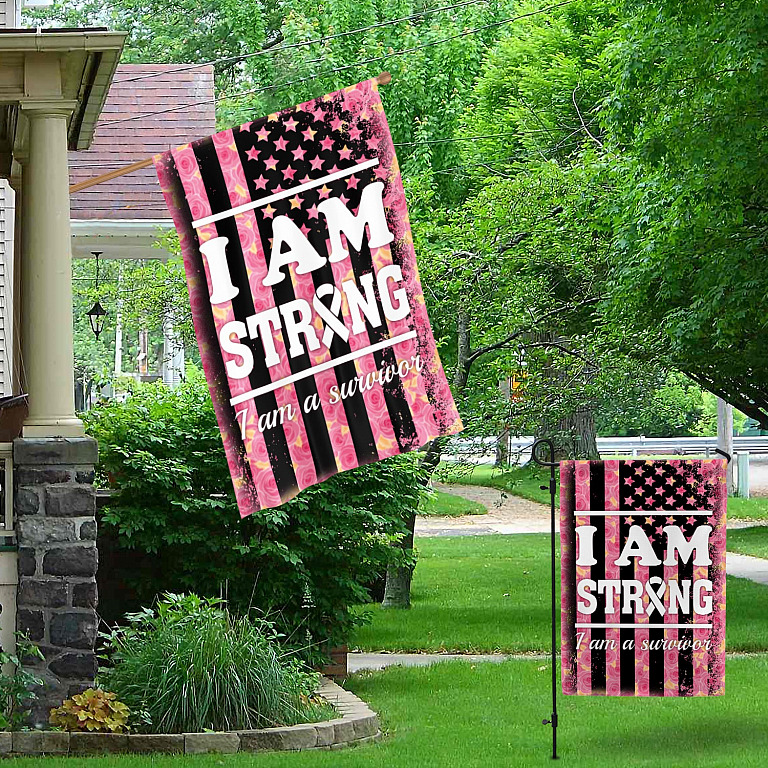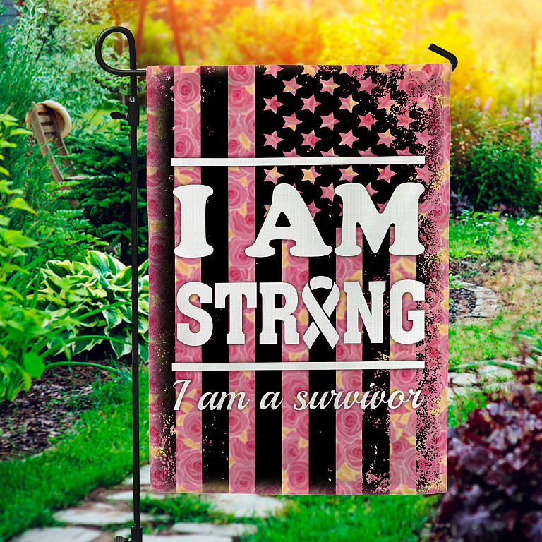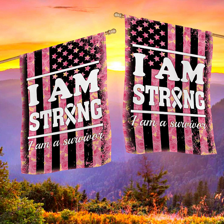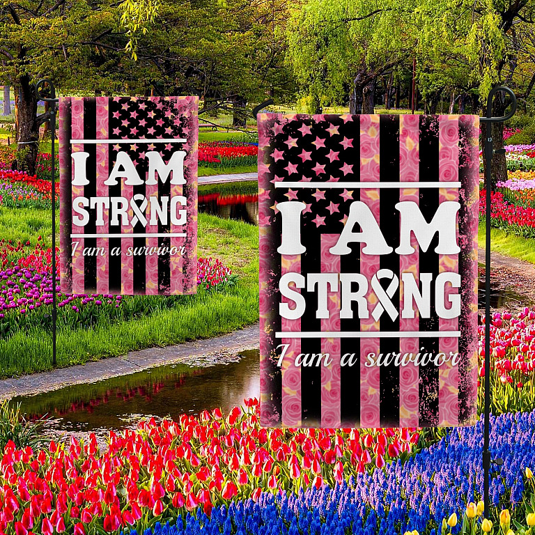 Let’s Shop I Am Strong I Am a Survivor Breast Cancer Awareness Garden Flag – House Flag – Wall Flag!