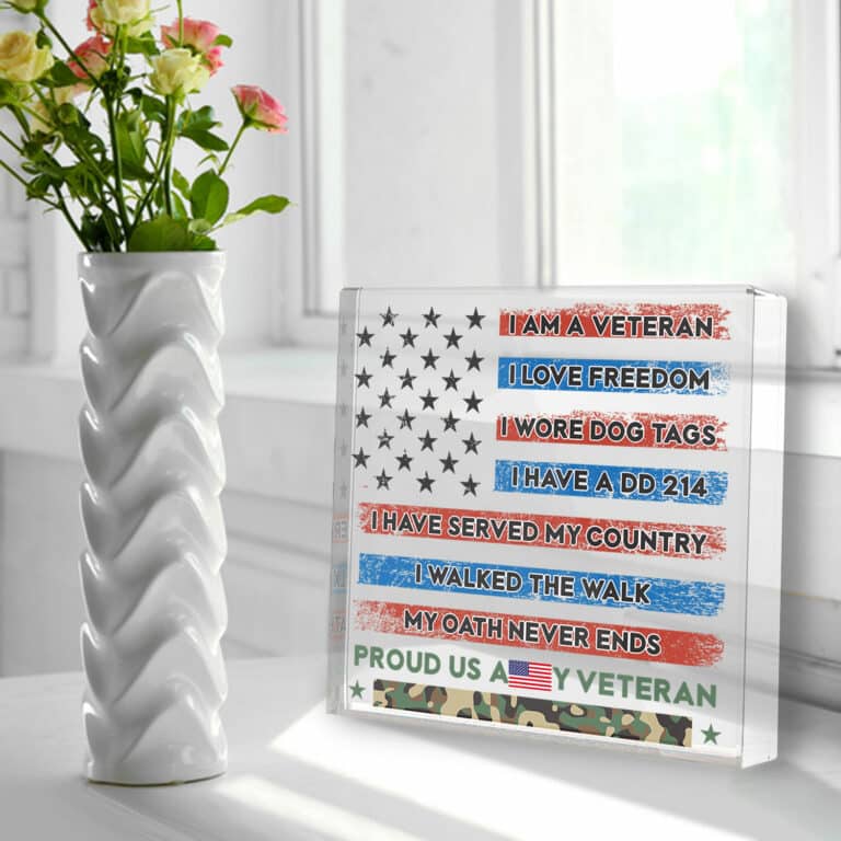 Let’s Shop I Am Veteran Love Freedom Acrylic Keepsake and Paperweight – Gifts for Dad Father , Gifts for Veteran!
