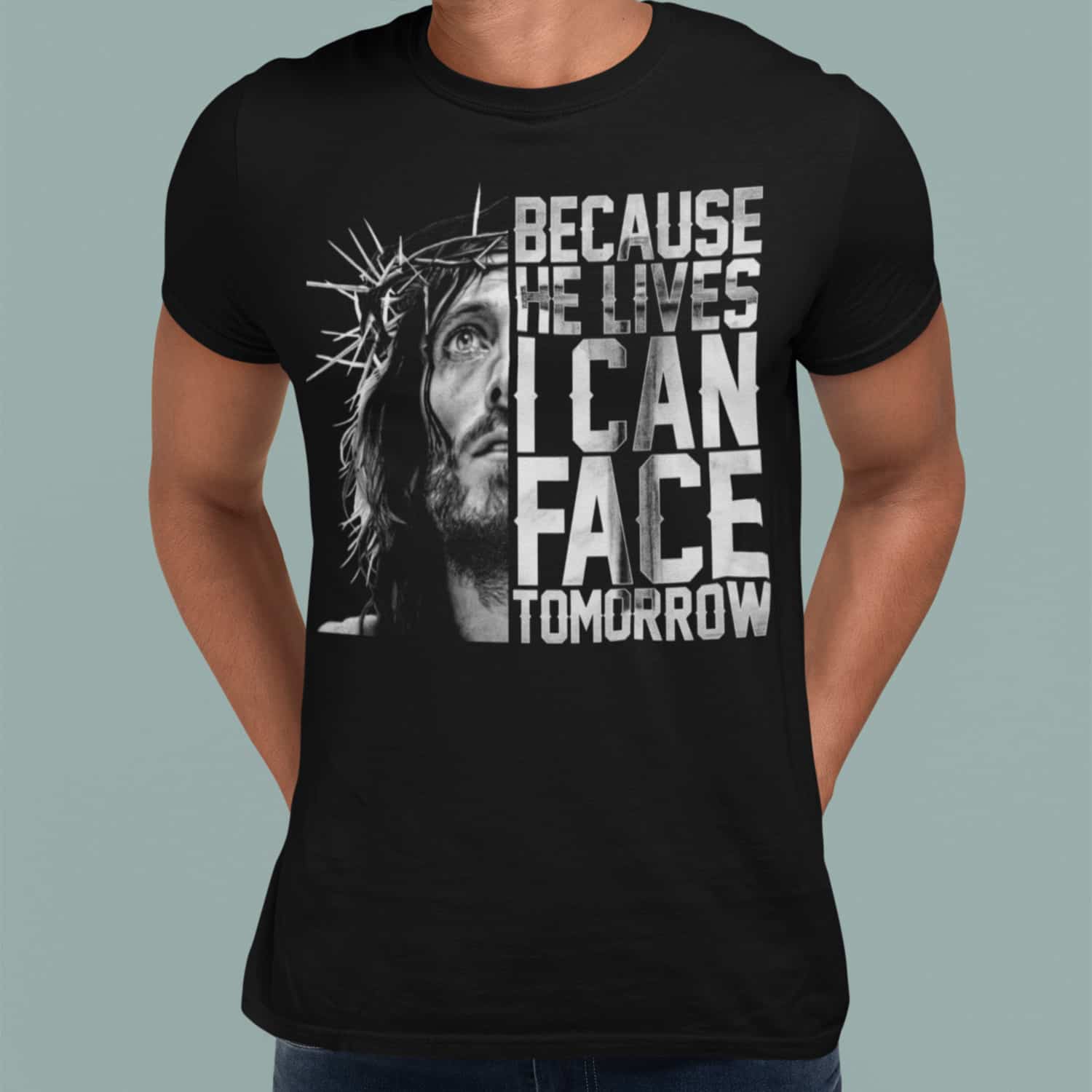 Because He Lives I Can Face Tomorrow Jesus T-Shirt