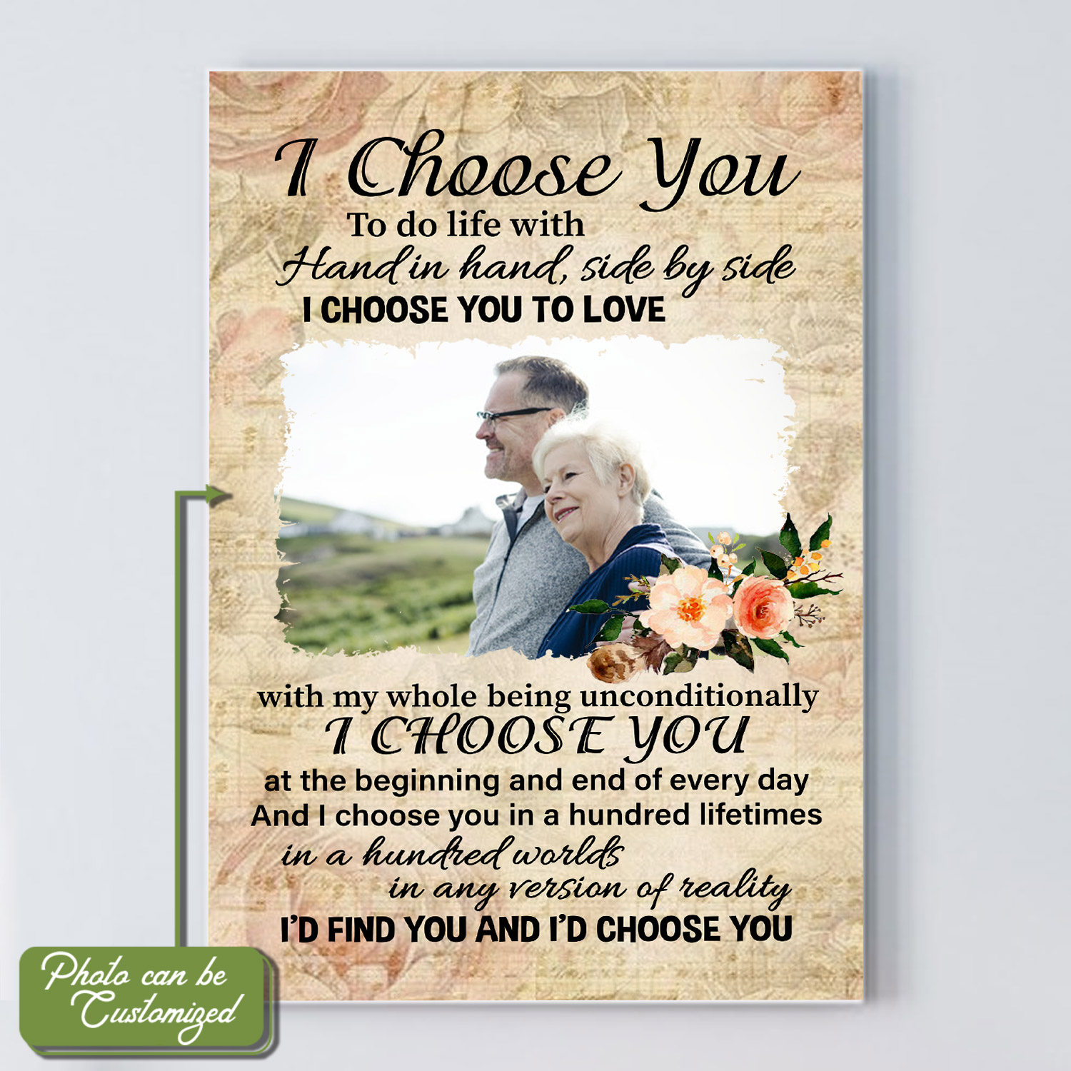Let’s Shop Personalized Photo I Choose You to Do Life with Hand in Hand Side By Side Wrapped Canvas – Unframed Poster!