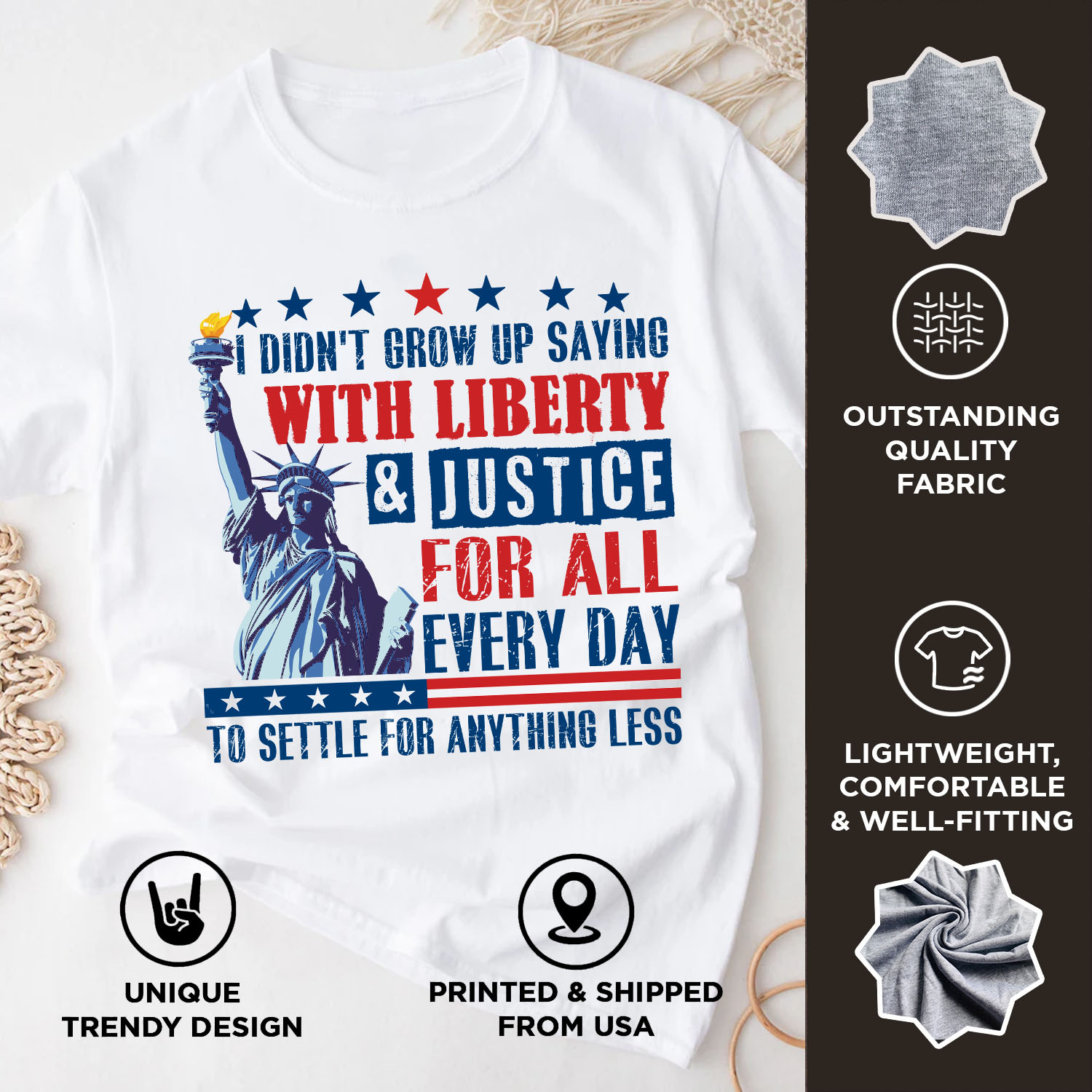 Are you spending too much time to find creative merchandise for you or suitable & special gifts for your mommy, your daddy, your son, your daughter, your children, your friends or someone you love? The struggle is over because we have various I Didn’t Grow Up Saying with Liberty Shirt, I Didn’t Grow Up Saying with Liberty and Justice for All Womens Shirt, I Didn’t Grow Up Saying with Liberty and Justice for All T-Shirt, I Didn’t Grow Up Saying with Liberty and Justive for All Shirt which will make perfect presents for your beloveds. In order to make your present stand out, we have created lots of unique and awesome customized photo gifts & personalized designs.