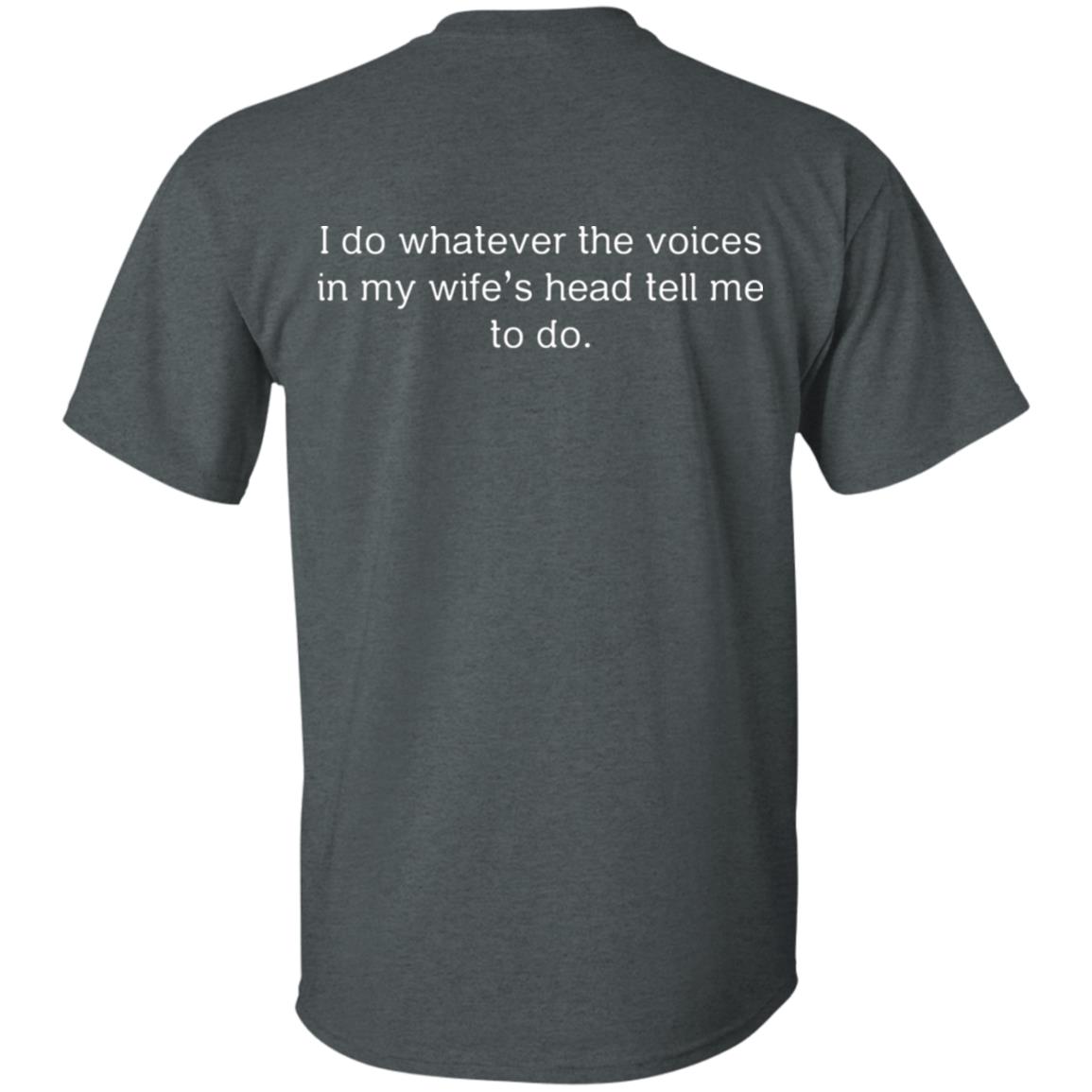 I Do Whatever The Voices in My Wife's Head Tell Me to Do Print On Back T-Shirt - Couple Husband and Wife T-Shirt