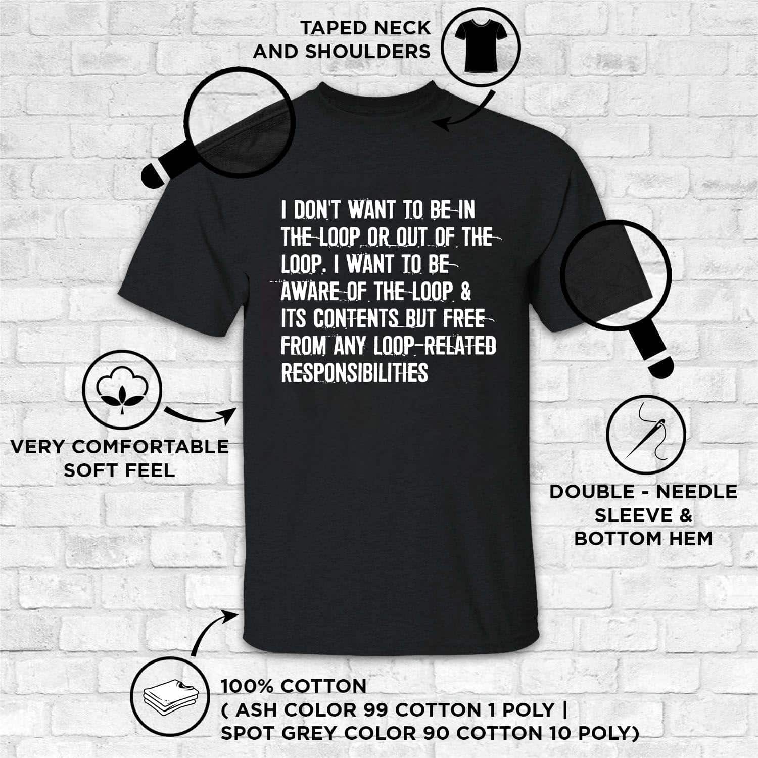 I am a collector of funny t-shirts and when I saw this one I had to buy it. I absolutely love it. The T-shirt arrived in a timely manner. The decal on the front is perfect and it is very very soft. It is true to size and I am very very happy with my purchase.