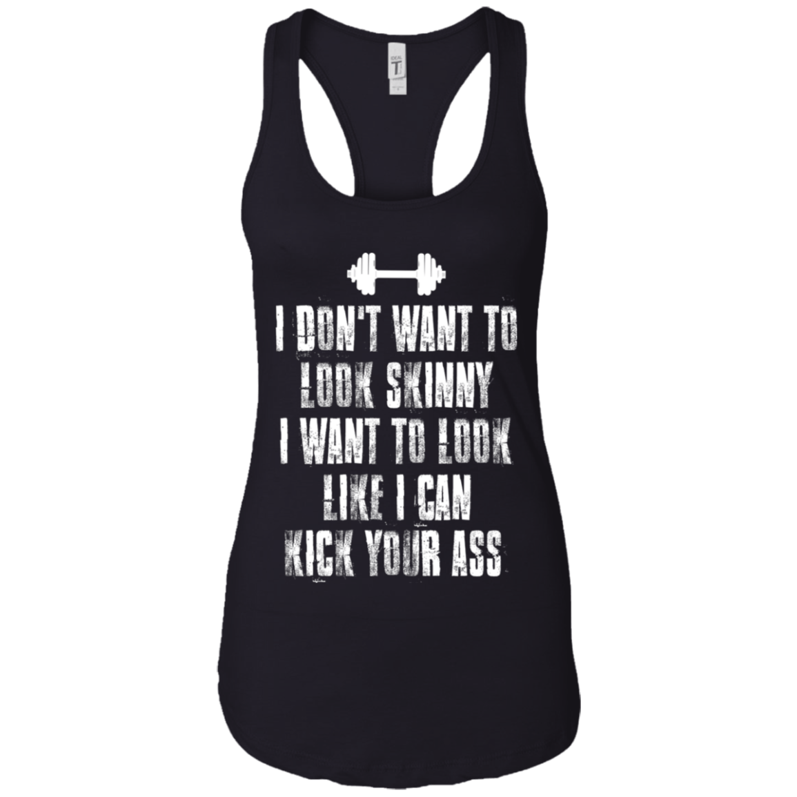I Dont Want To Look Skinny I Want To Look Like I Can Kick Your Ass Cotton Tank Top Tee – Ladies Racerback Tank