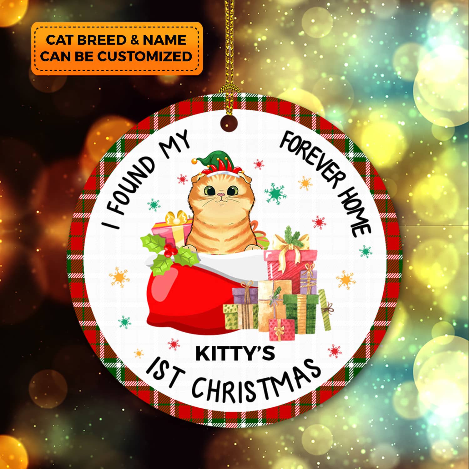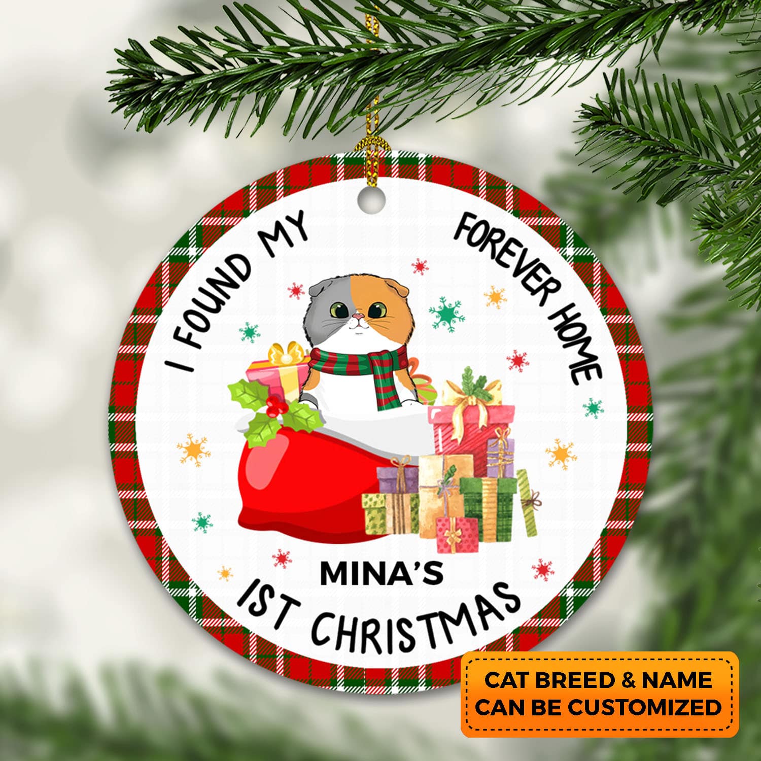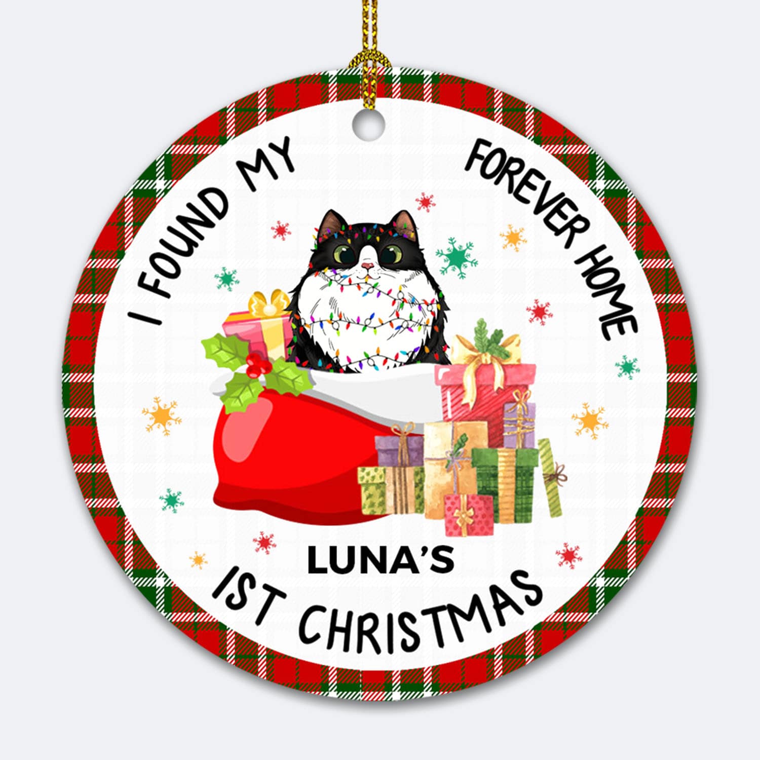 Let’s Shop I Found My Forever Home Personalized 1st Christmas Cat Circle Christmas Ornament – Custom Pet Ornament!