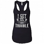 I Get Us Into Trouble Cotton Tank Top Tee – Ladies Racerback Tank
