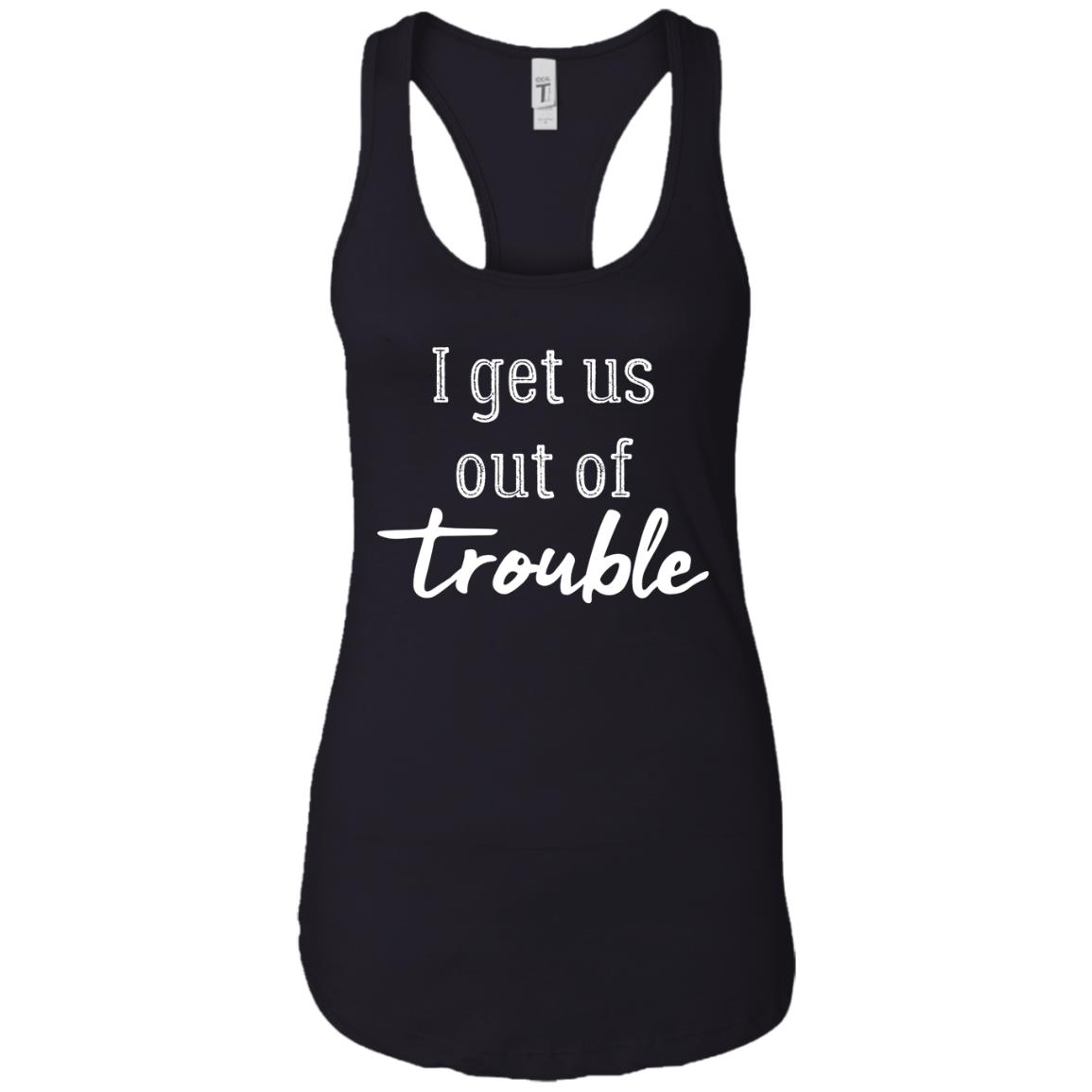 I Get Us Out Of Trouble – I Get Us Into Trouble Cotton Tank Top Tee – Ladies Racerback Tank
