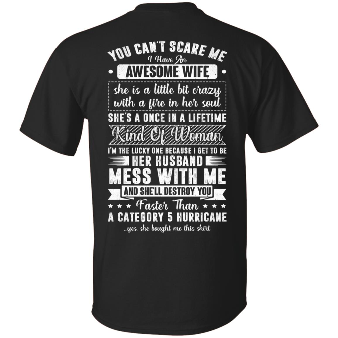 I Have Crazy Wife Mess With Me She’ll Destroy You Faster Than A Category 5 Hurricane Print On Back T-shirt-V-neck